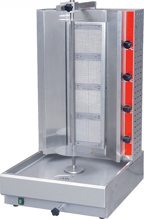 Оборудование оснащено тремя независимыми регулируемыми зонами нагрева, что позволяет адаптировать температурный режим под различные виды мяса и размеры продукта. Вертел высотой 960 мм обеспечивает равномерное приготовление мяса со всех сторон.