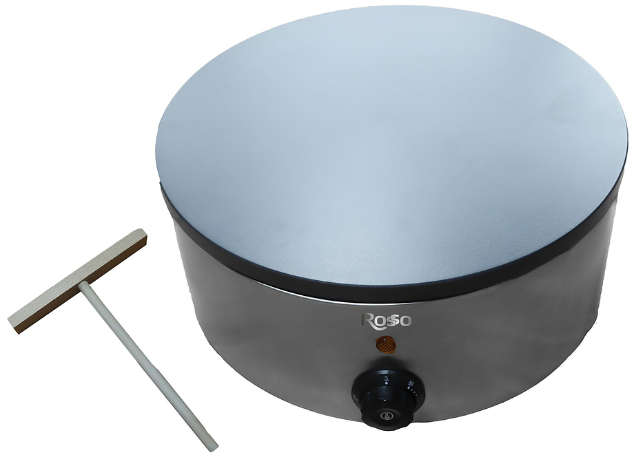 Блинница Rosso HCM-400 - предназначена для выпечки круглых блинов на предприятиях общественного питания и торговли. Модель оснащена гладкой жарочной поверхностью, терморегулятором с возможностью настройки температуры в пределах от 50 до 300 С0.
