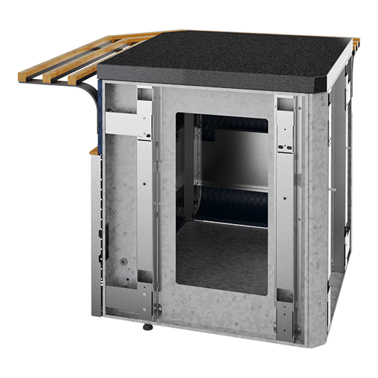 Прилавок используется для удобства комплектации модулей в линию прилавков самообслуживания, является промежуточным вспомогательным элементом. Прилавки между собой отличаются по типоразмерам и исполнениям: 45° и 90°. У прилавка освещается только фасадная ниша.