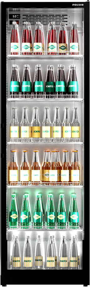 - Максимальная обзорность продуктов: напитки занимают весь фронтальный периметр шкафа