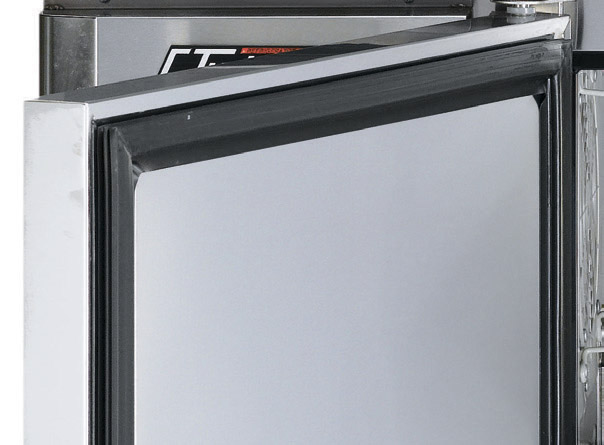 Оснащены петлями из высококачественной нержавеющей стали. На корпусе холодильного оборудования используется уплотнение из АБС-пластика, которое улучшает теплоизоляцию и не пропускает конденсат. Эргономичные ручки, утопленные в форму двери, позволяют экономить пространство на кухне и на них не остаётся следов от пальцев. Облегчённая конструкция увеличивает срок службы дверей, уменьшает износ петель и облегчает плавное открытие.