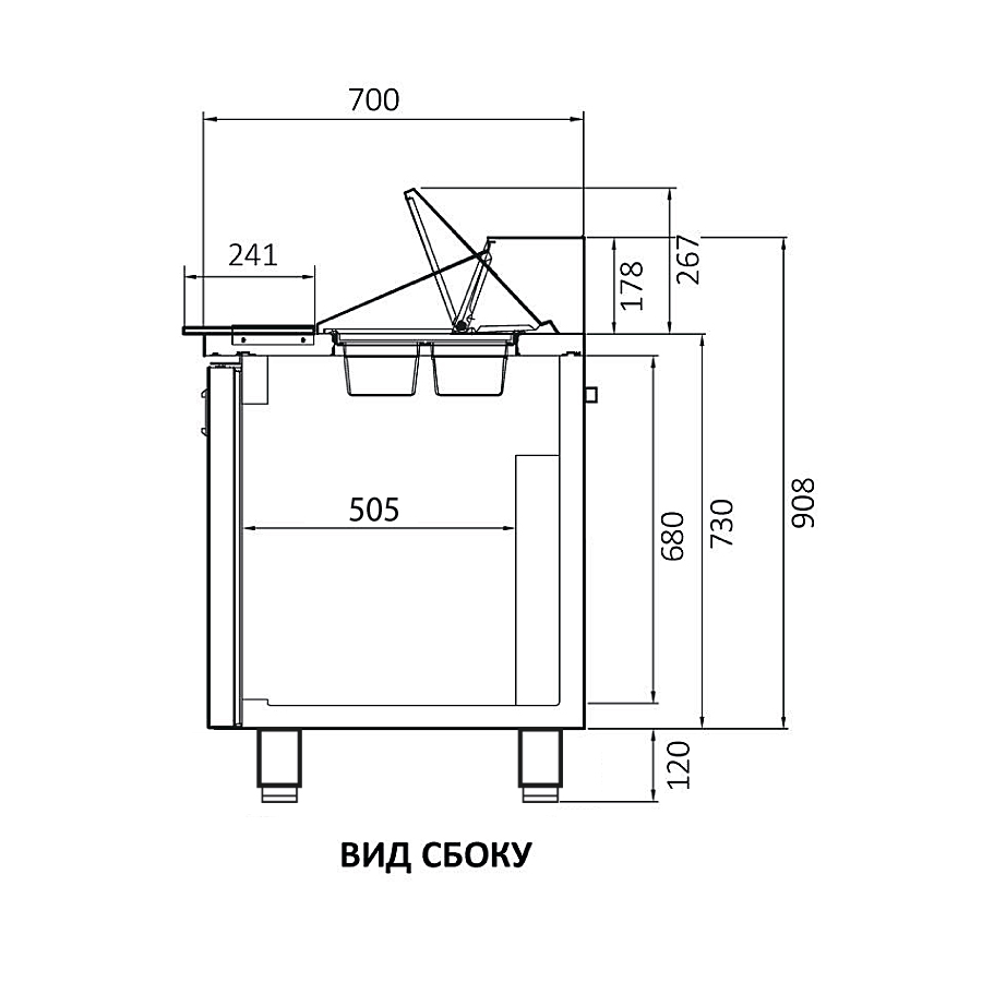 - Отделение для гастроёмкостей закрывается откидной крышкой.