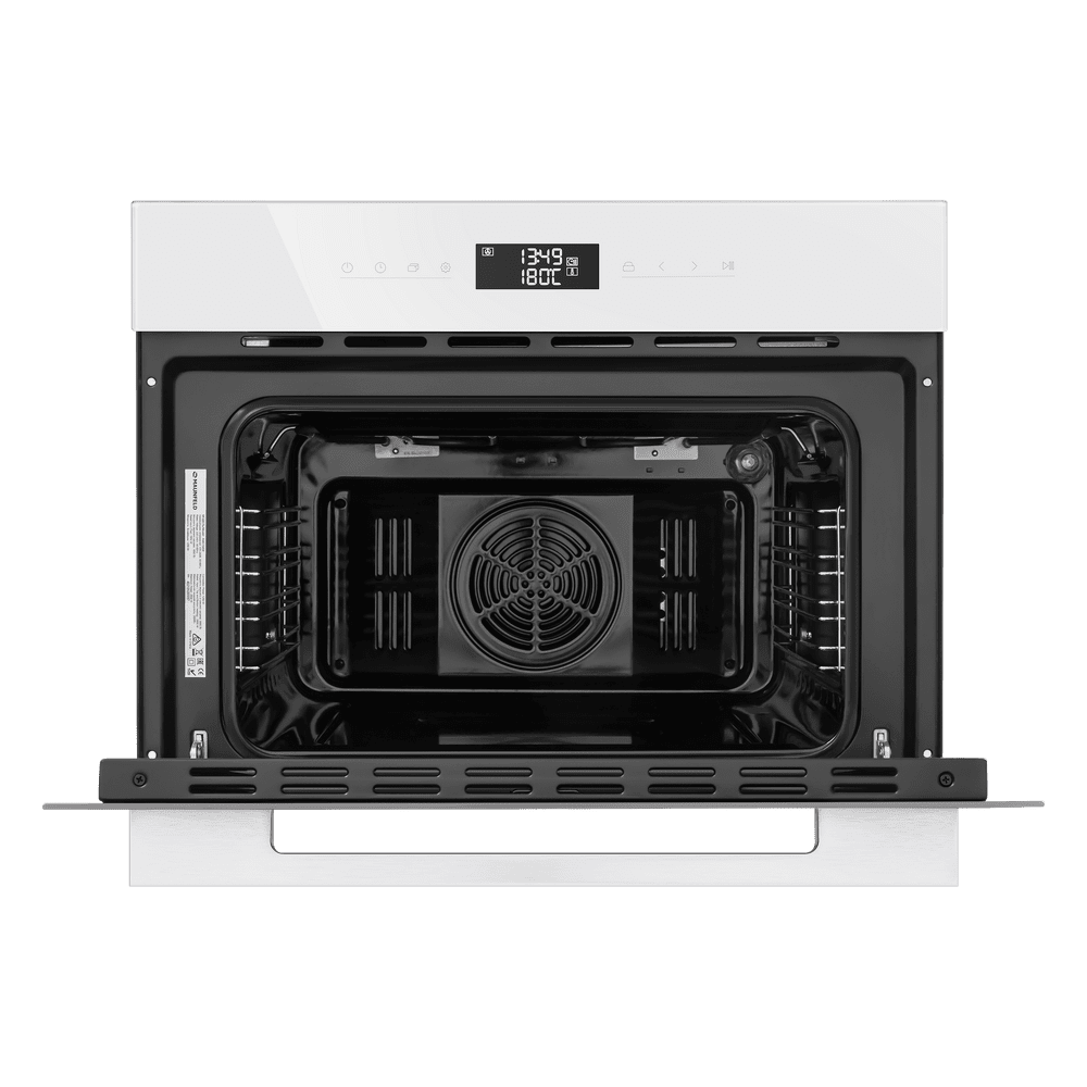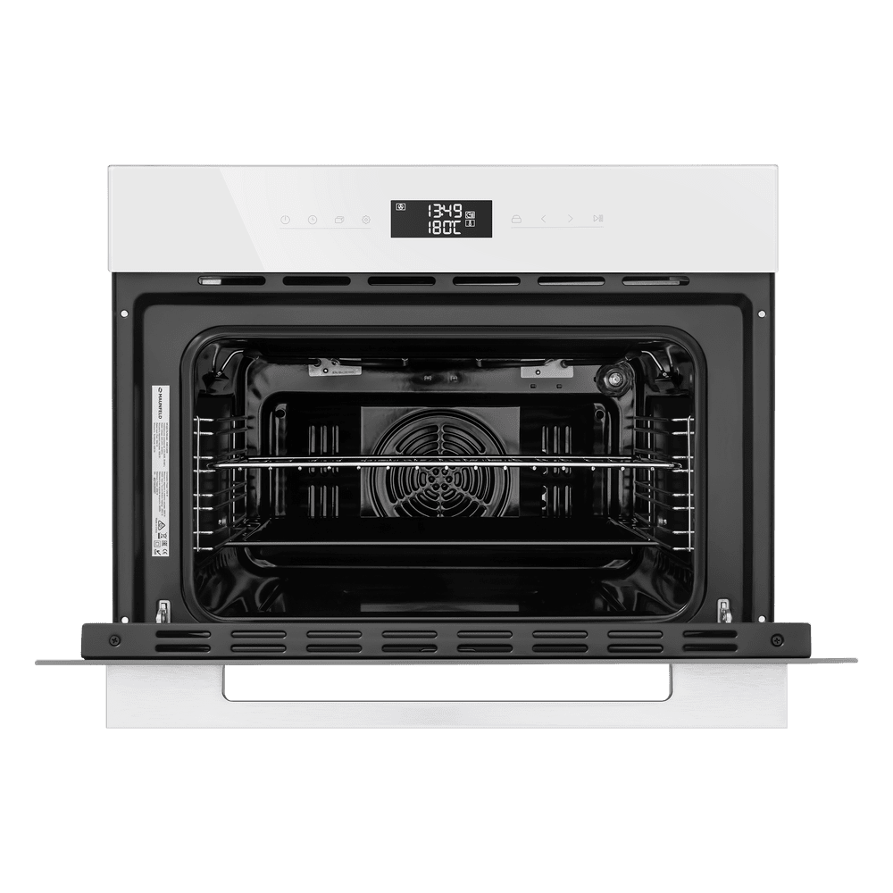 Встраиваемый компактный электрический духовой шкаф MAUNFELD AMCO458GW с фронтальной панелью из высококачественного жаропрочного стекла. Духовой шкаф имеет большой объем 45 л для своих компактных габаритов.