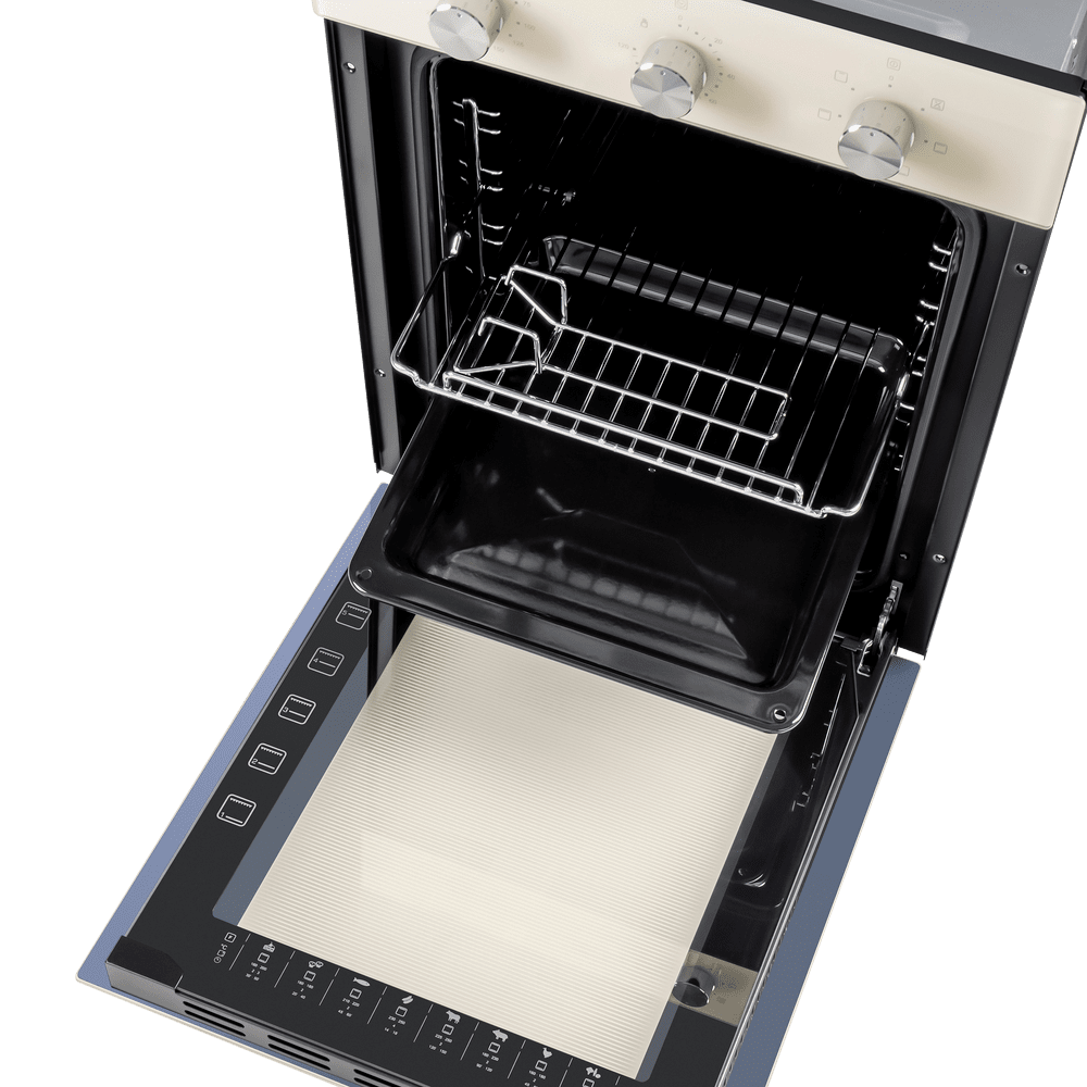 Встраиваемый компактный электрический духовой шкаф MAUNFELD EOEC516BG с фронтальной панелью из высококачественного жаропрочного стекла. Духовой шкаф имеет большой объем 51 л для своих компактных габаритов.