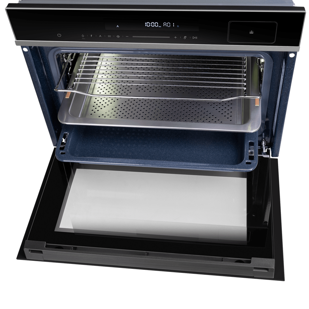 Эстетика и безопасность духового шкафа MAUNFELD MCMO5016STGB - особенность модели. Технология "Холодный фронт" обеспечит защиту от ожогов или неприятных ощущений при случайном касании дверцы. А трамп-линии на внутреннем стекле создают эффект непрозрачности фасада: при выключенном состоянии не будет заметна посуда, находящаяся внутри духового шкафа, а при включенном освещении, можно с легкостью рассмотреть детали готовки. Также дверца оснащена доводчиком, который позволяет закрывать духовку плавно и тихо.