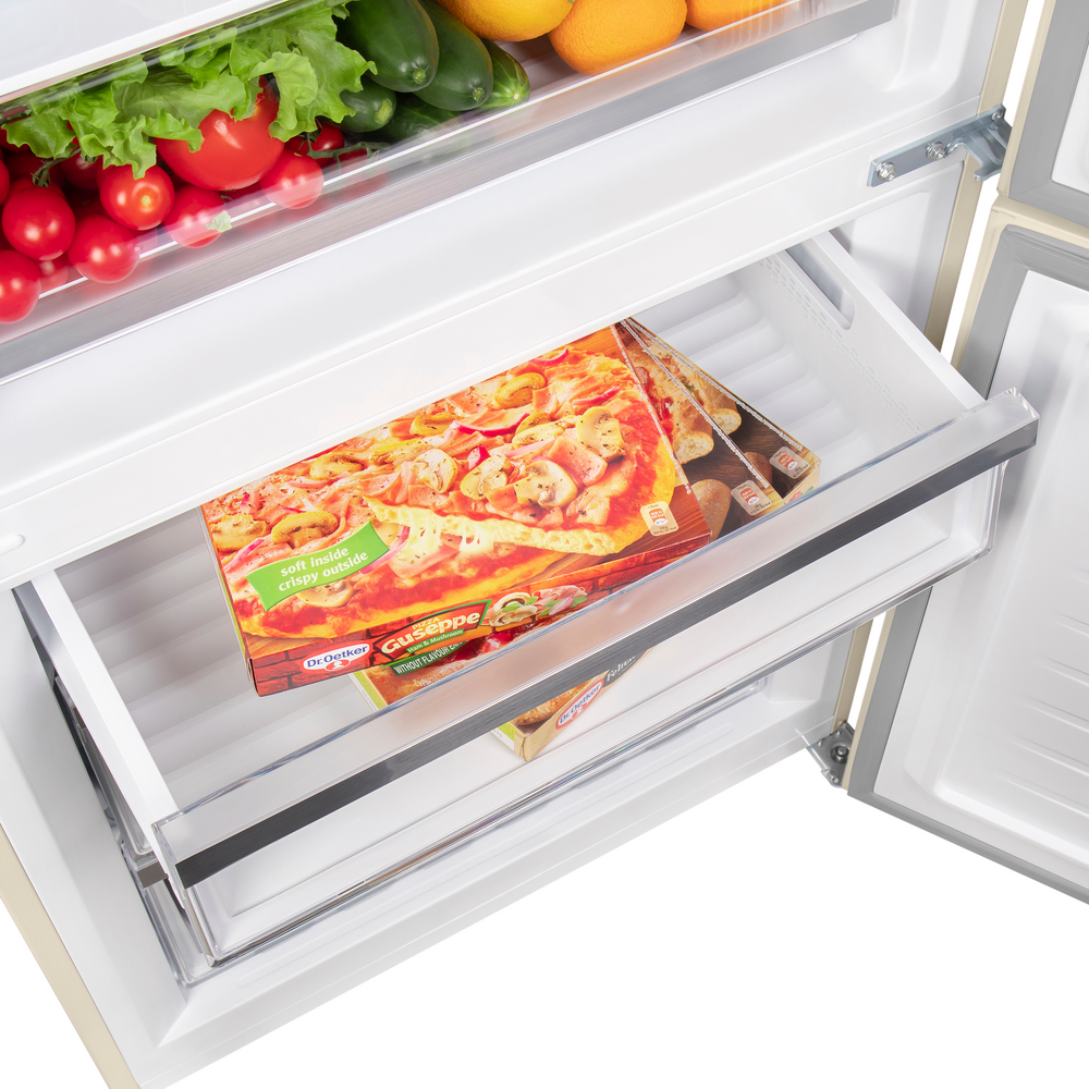 - Современная система охлаждения обеих камер "No Frost" не даёт образоваться инею и льду на стенках холодильника — благодаря постоянной циркуляции холодного воздуха в холодильном и морозильном отделении создаются оптимальные условия хранения продуктов