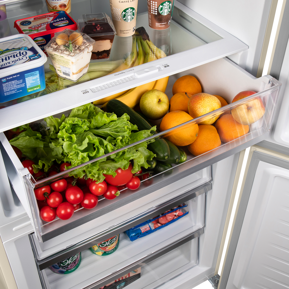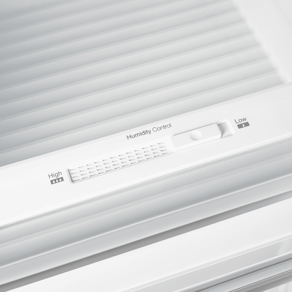 - Функция Humidity control позволяет регулировать уровень влажности в зоне свежести, благодаря чему овощи и фрукты дольше хранятся