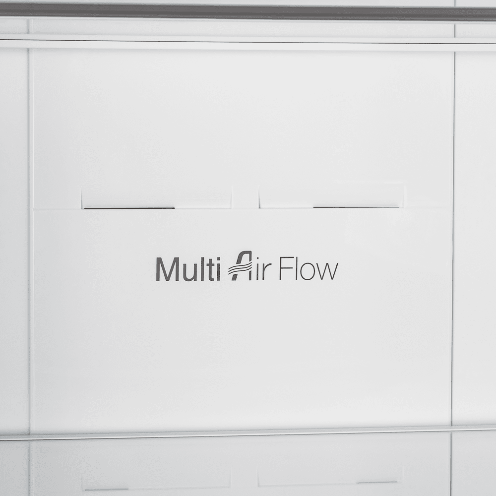 - Система многопоточного охлаждения Multi Air Flow равномерно распределяет холодные воздушные потоки внутри холодильной и морозильной камер, тем самым поддерживая установленную температуру во всех уголках холодильника