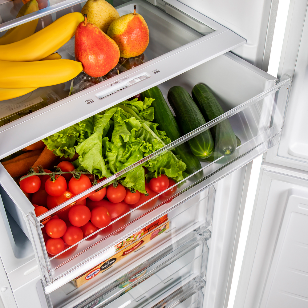 - Функция Humidity control позволяет регулировать уровень влажности в зоне свежести, благодаря чему овощи и фрукты дольше хранятся