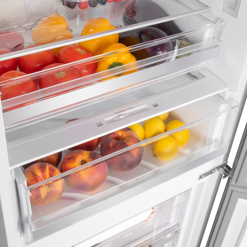 - Функция Humidity control позволяет регулировать уровень влажности в зоне свежести, благодаря чему овощи и фрукты дольше хранятся
