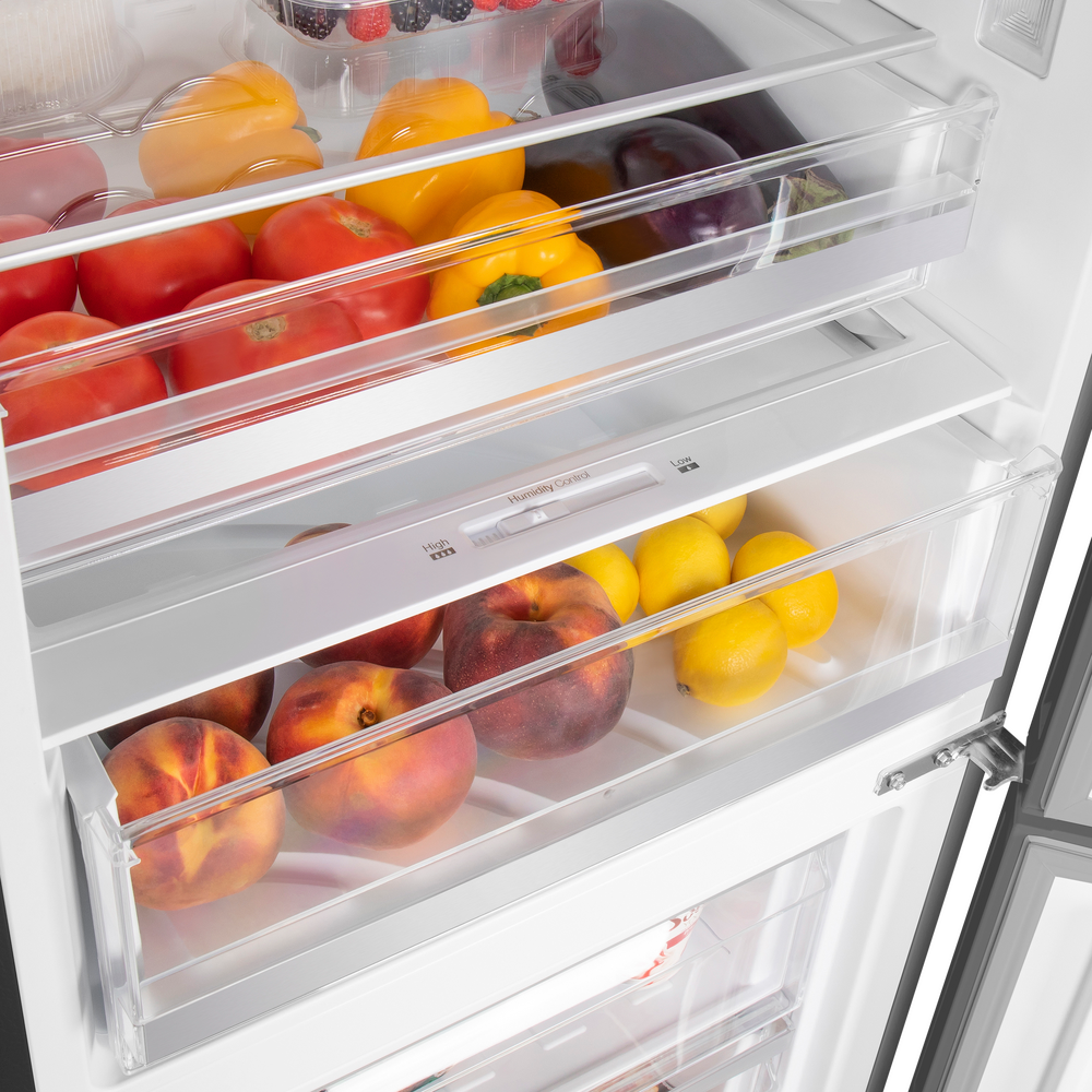 - Функция Humidity control позволяет регулировать уровень влажности в зоне свежести, благодаря чему овощи и фрукты дольше хранятся