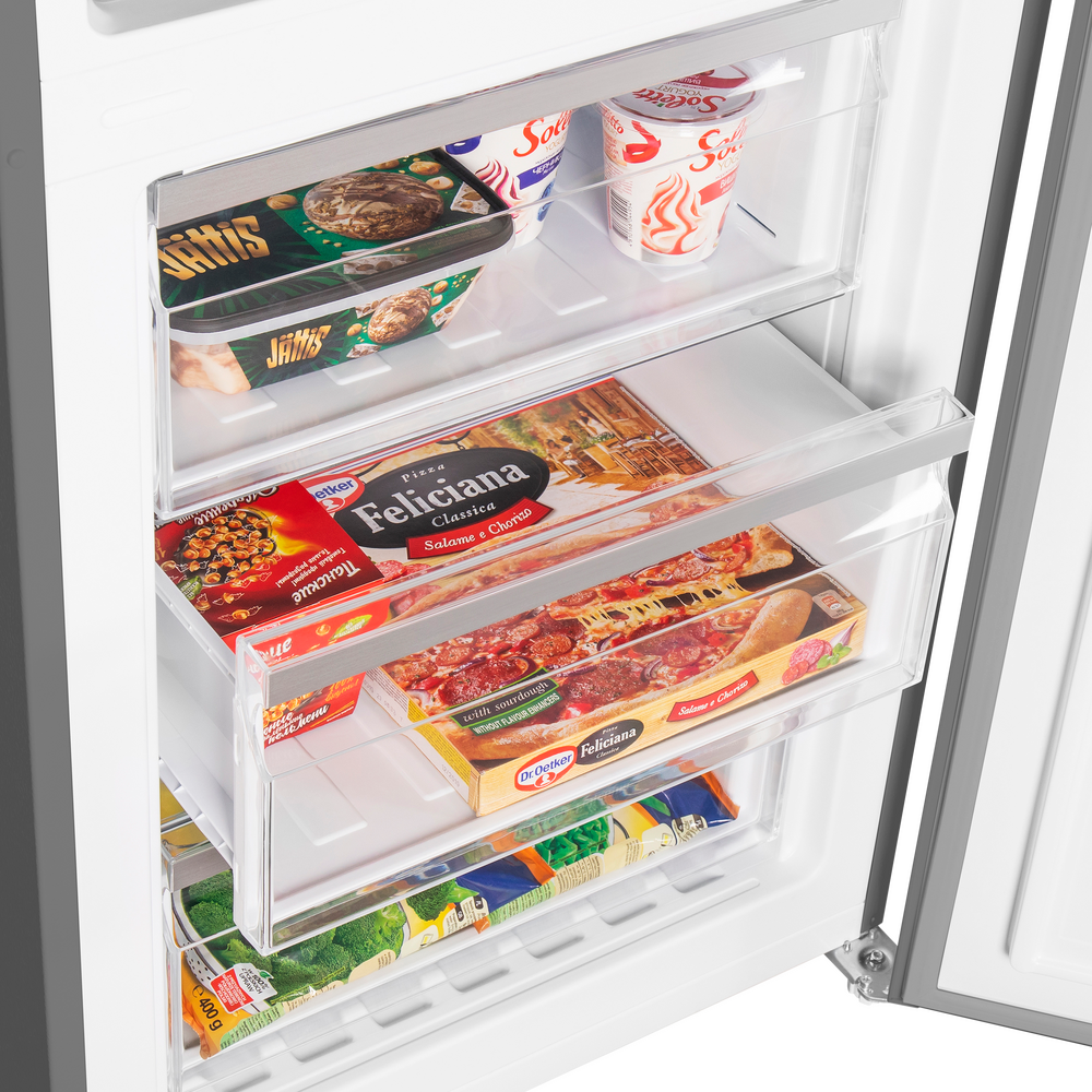 - Современная система охлаждения обеих камер "No Frost" не даёт образоваться инею и льду на стенках холодильника — благодаря постоянной циркуляции холодного воздуха в холодильном и морозильном отделении создаются оптимальные условия хранения продуктов