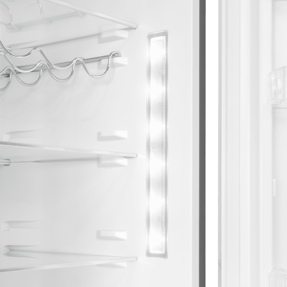 - Внутренняя светодиодная подсветка обеспечивает отличный обзор внутреннего пространства холодильника