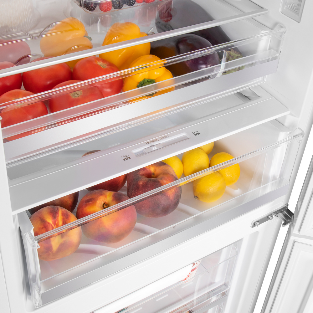 - Функция Humidity control позволяет регулировать уровень влажности в зоне свежести, благодаря чему овощи и фрукты дольше хранятся