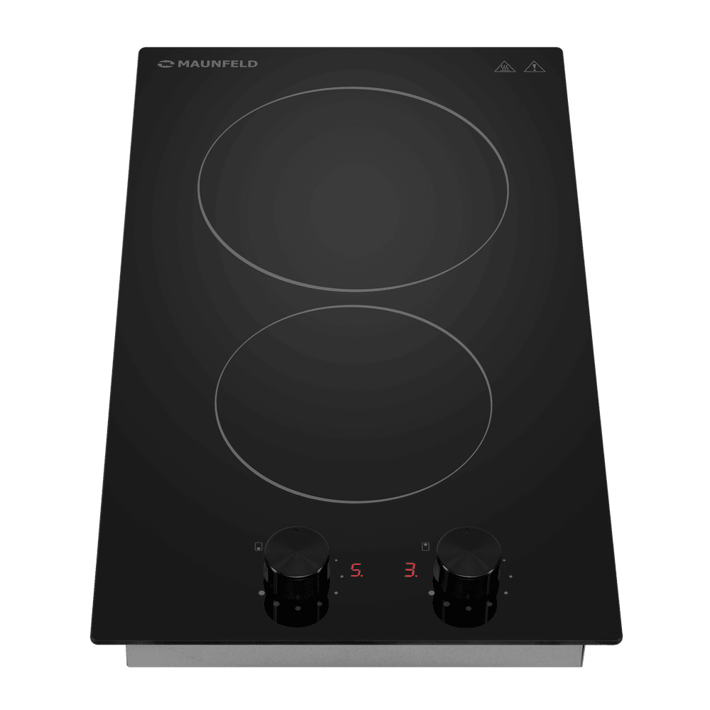 Компактная встраиваемая двухконфорочная электрическая варочная панель MAUNFELD CVCE292MBK2 выполнена из ударопрочной стеклокерамики. Варочная панель с механическим управлением с помощью поворотных переключателей из высокопрочного термостойкого пластика.