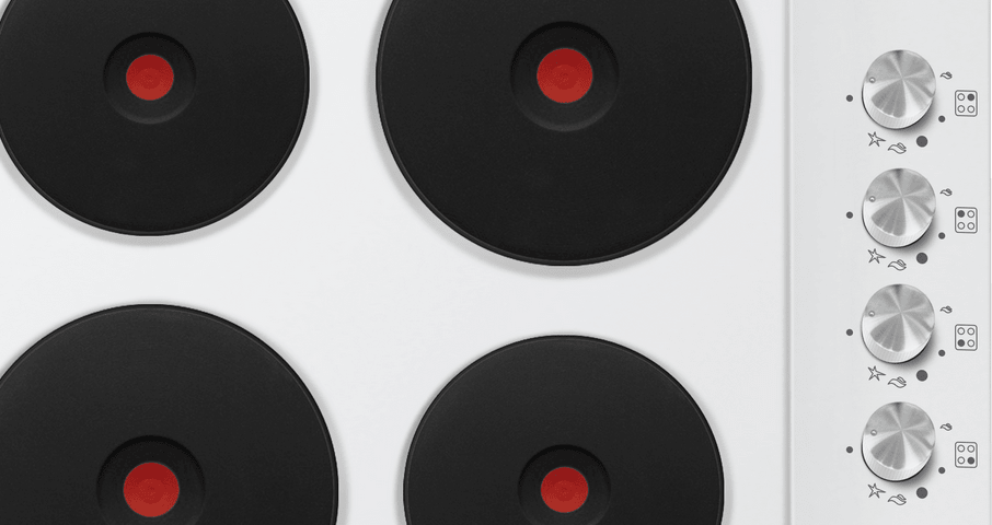 В варочной панели используется 4 прочные чугунные конфорки быстрого нагрева HP RAPID со стальной окантовкой. Красный круг по центру – индикатор нагрева.
