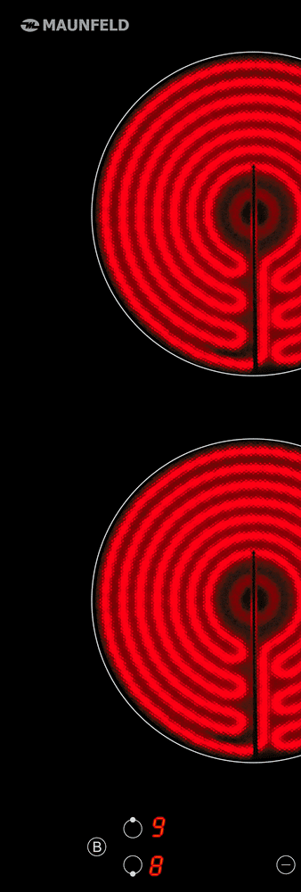 Компактная встраиваемая двухконфорочная электрическая варочная панель MAUNFELD EVCE.292-BK выполнена из ударопрочной стеклокерамики. Варочная панель с сенсорным управлением с красной индикацией.