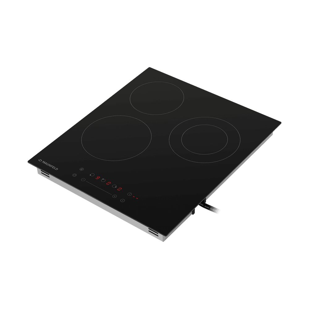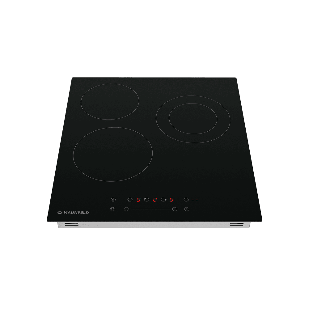 Встраиваемая 3-х конфорочная электрическая варочная панель MAUNFELD EVCE.453.D-BK выполнена из ударопрочной стеклокерамики Vitro Ceramic Glass. Варочная панель с сенсорным управлением с красной индикацией.
