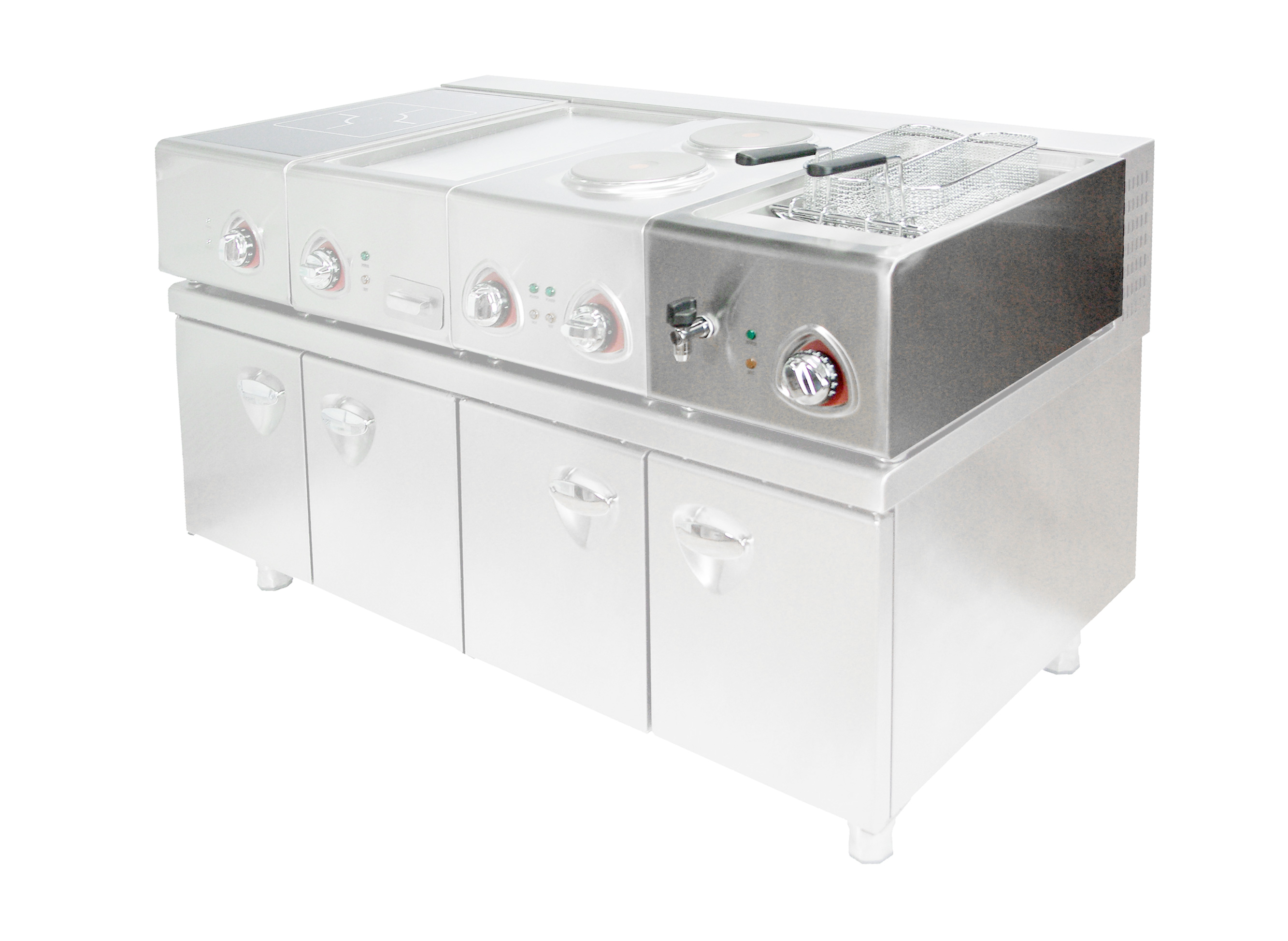 Отсутствие ТЭН-ов в ванне и специальная форма дна ванны для упрощения процесса чистки. Рабочие поверхности и поверхности соприкасающиеся с пищей из нержавеющей стали AISI304 толщиной 1 мм; - дно и задняя стенка из нержавеющей стали AISI201 толщиной 1 мм.