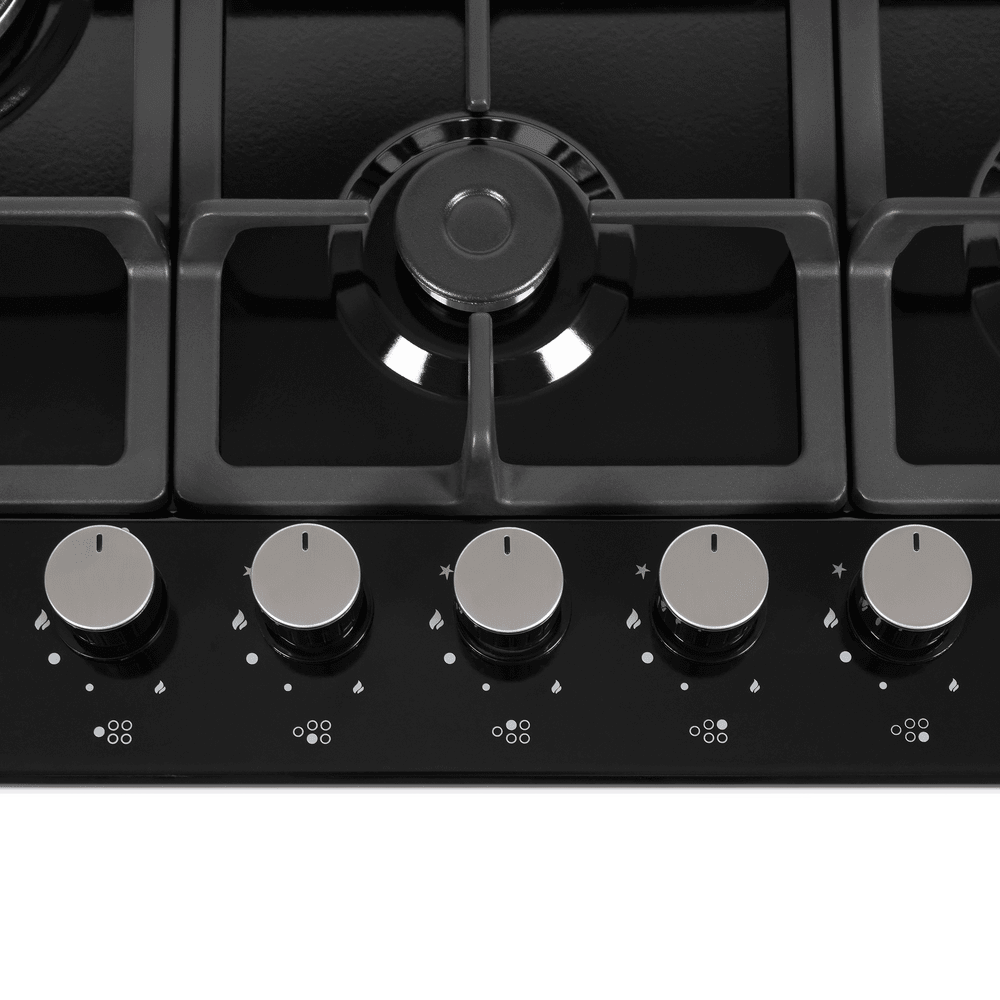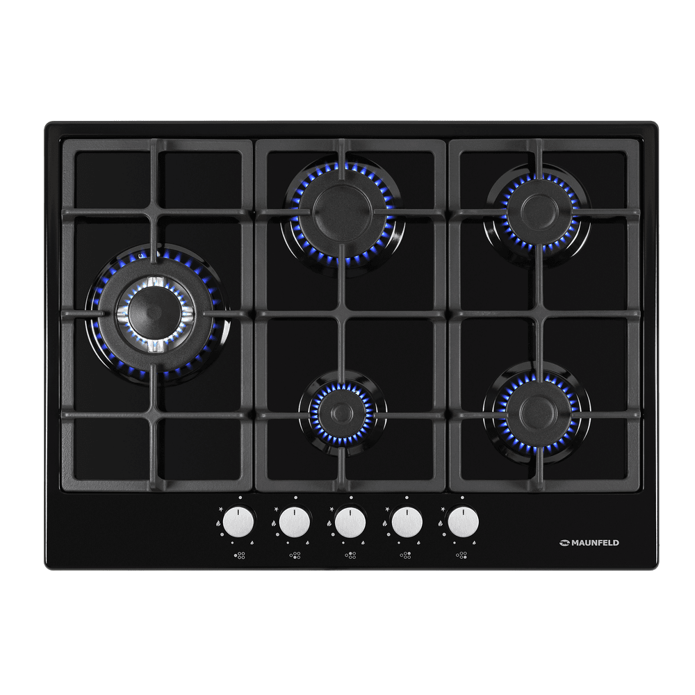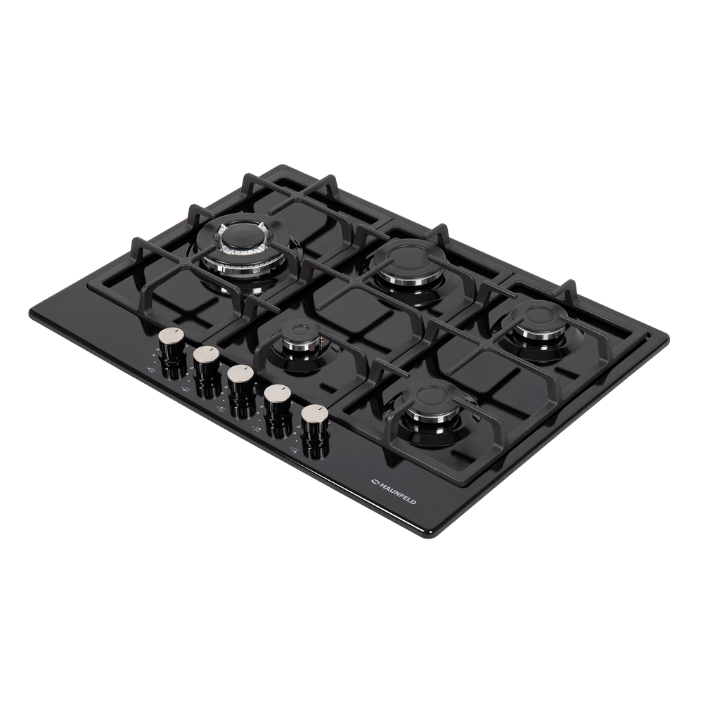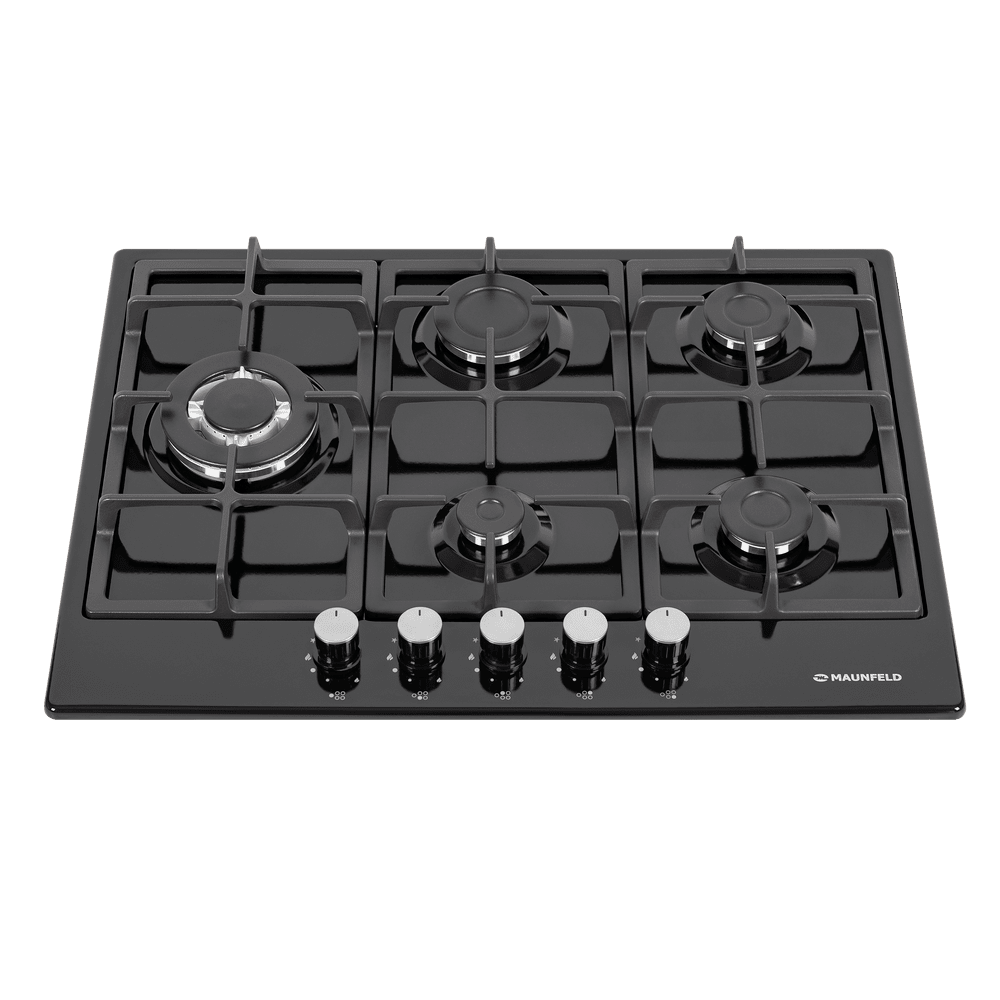Встраиваемая 5-ти конфорочная газовая варочная панель MAUNFELD EGHE.75.33CB\G выполнена из нержавеющей стали, покрытой термостойкой прочной эмалью черного цвета с чугунной решеткой. Благодаря своей массивности, решетки обладают устойчивостью, не скользят под посудой, не гнутся под весом кастрюль. Варочная панель с механическим управлением с помощью ручек из высокопрочного термостойкого пластика.