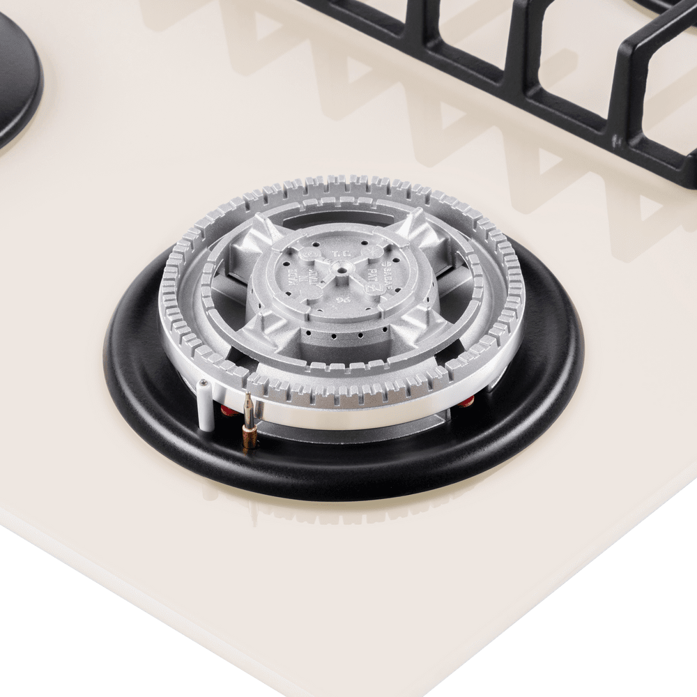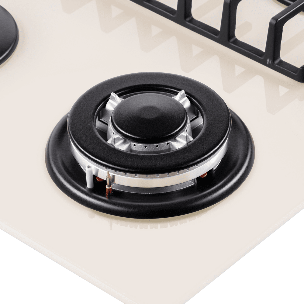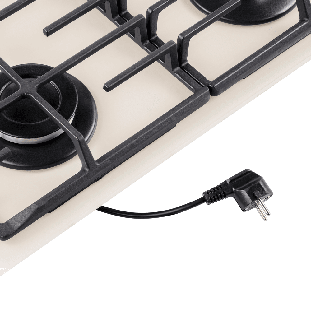 Варочная панель оснащена системой электроподжига. Система газ-контроля надежно защищает бытовой прибор от утечек газа при неожиданном затухании конфорки.