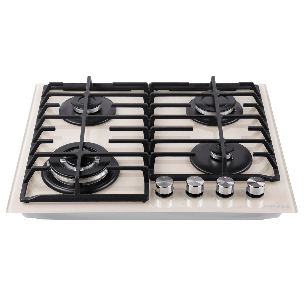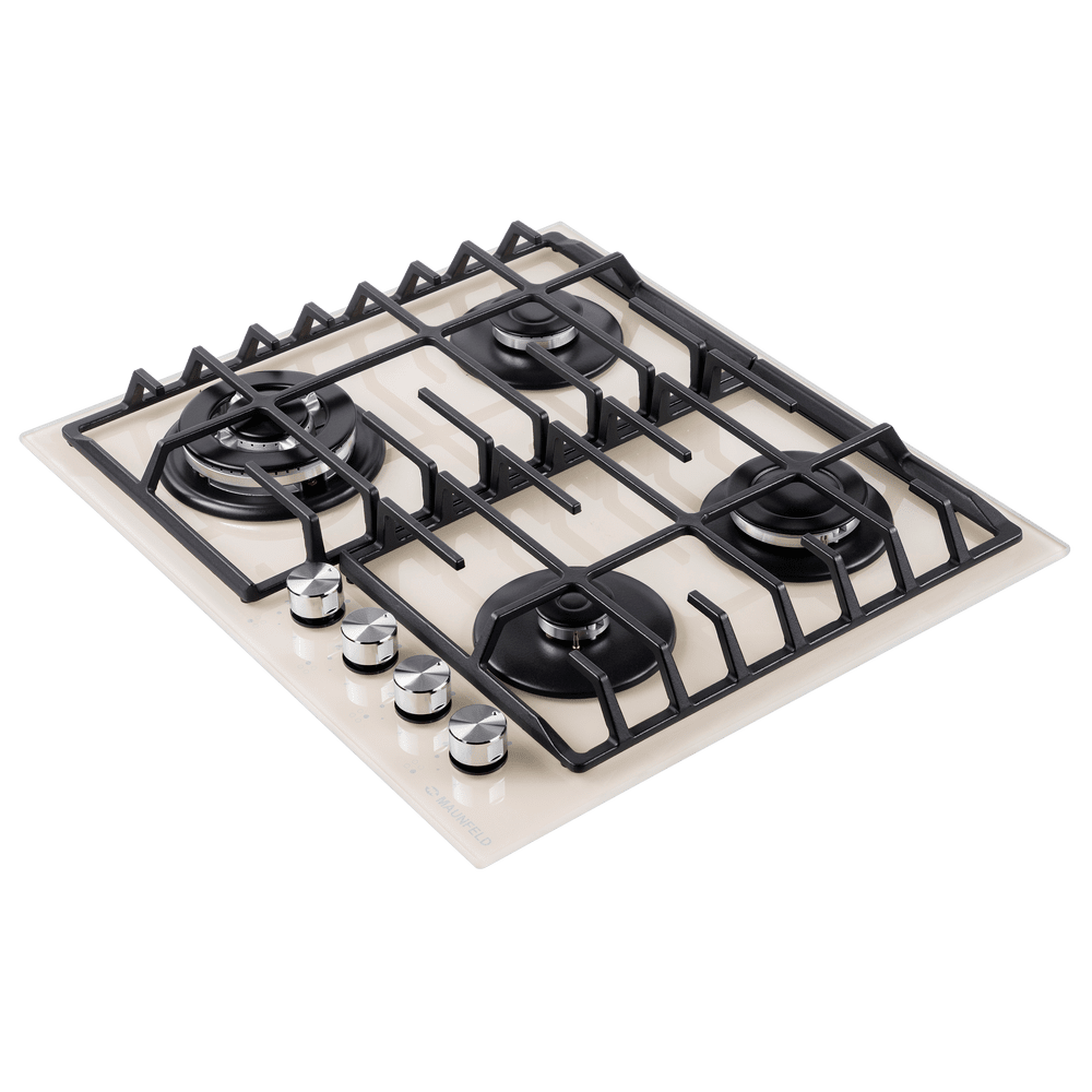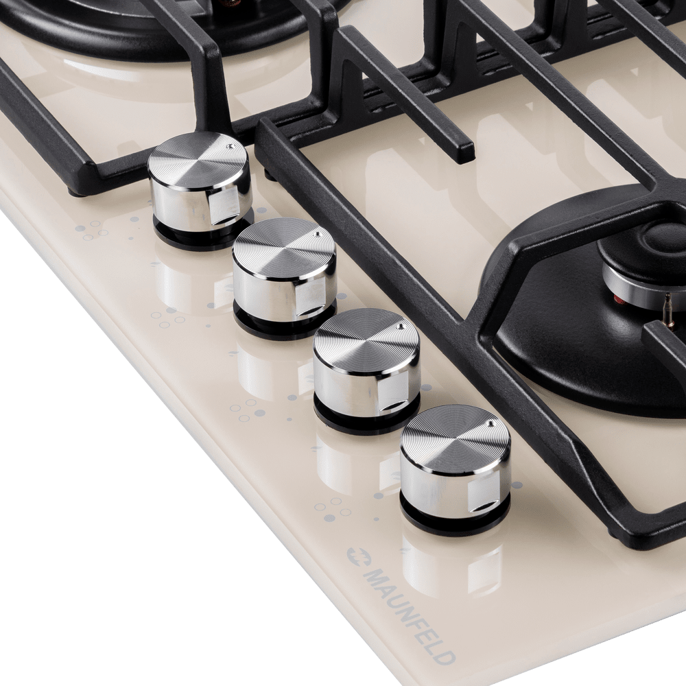 Встраиваемая четырехконфорочная газовая варочная панель MAUNFELD EGHG.64.63CBG/G выполнена из закаленного стекла бежевого цвета с чугунной решеткой. Чугунная решетка имеет крестообразные соединения над конфорками, что позволяет готовить в посуде разного диаметра, не используя специальные подставки. Варочная панель с механическим управлением с помощью полнотелых цельнометаллических ручек управления.