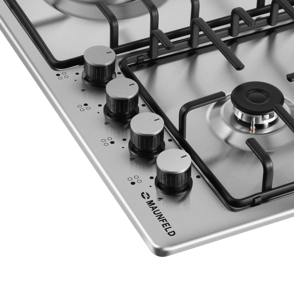 Встраиваемая четырехконфорочная газовая варочная панель MAUNFELD EGHS.64.3STS-ES/G выполнена из нержавеющей стали с эмалированными решетками ZENIYA. Варочная панель с механическим управлением с помощью полнотелых цельнометаллических ручек управления.