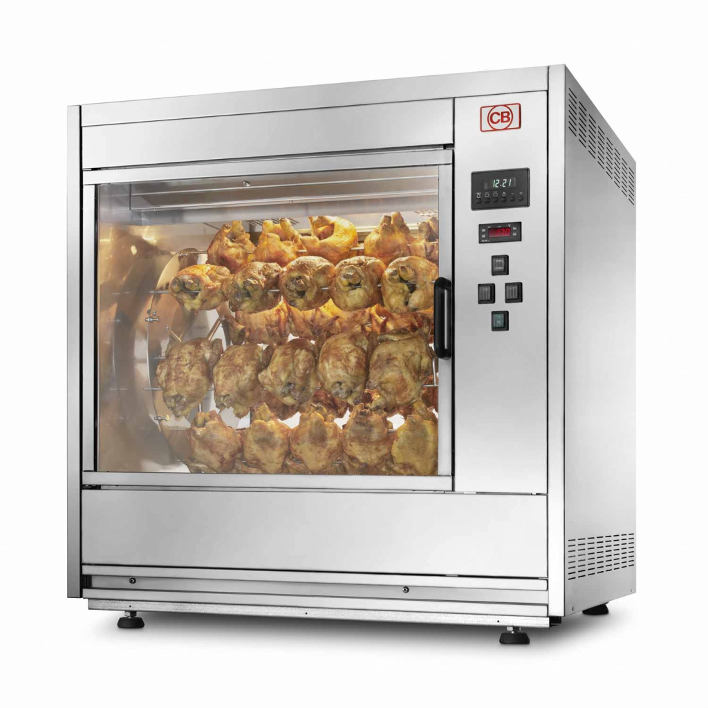 Профессиональная электрическая вентилируемая жаровня для кур с длинным вертелом и ручным таймером. Загрузка 35–42 кур.