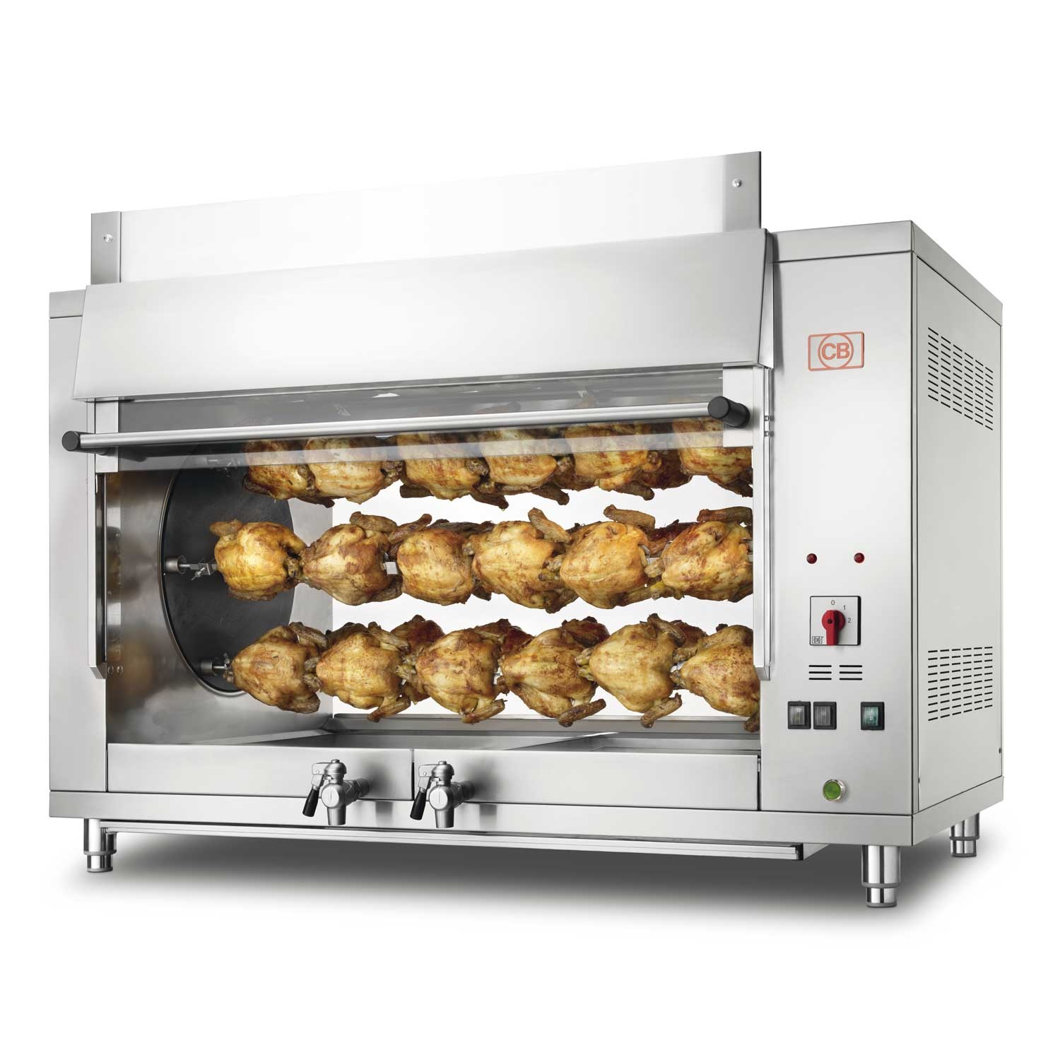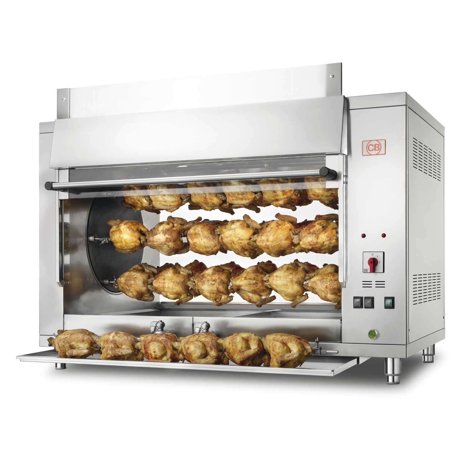 Планетарная электрическая жаровня на 36 кур, в комплекте 6 вертелов с вилками.