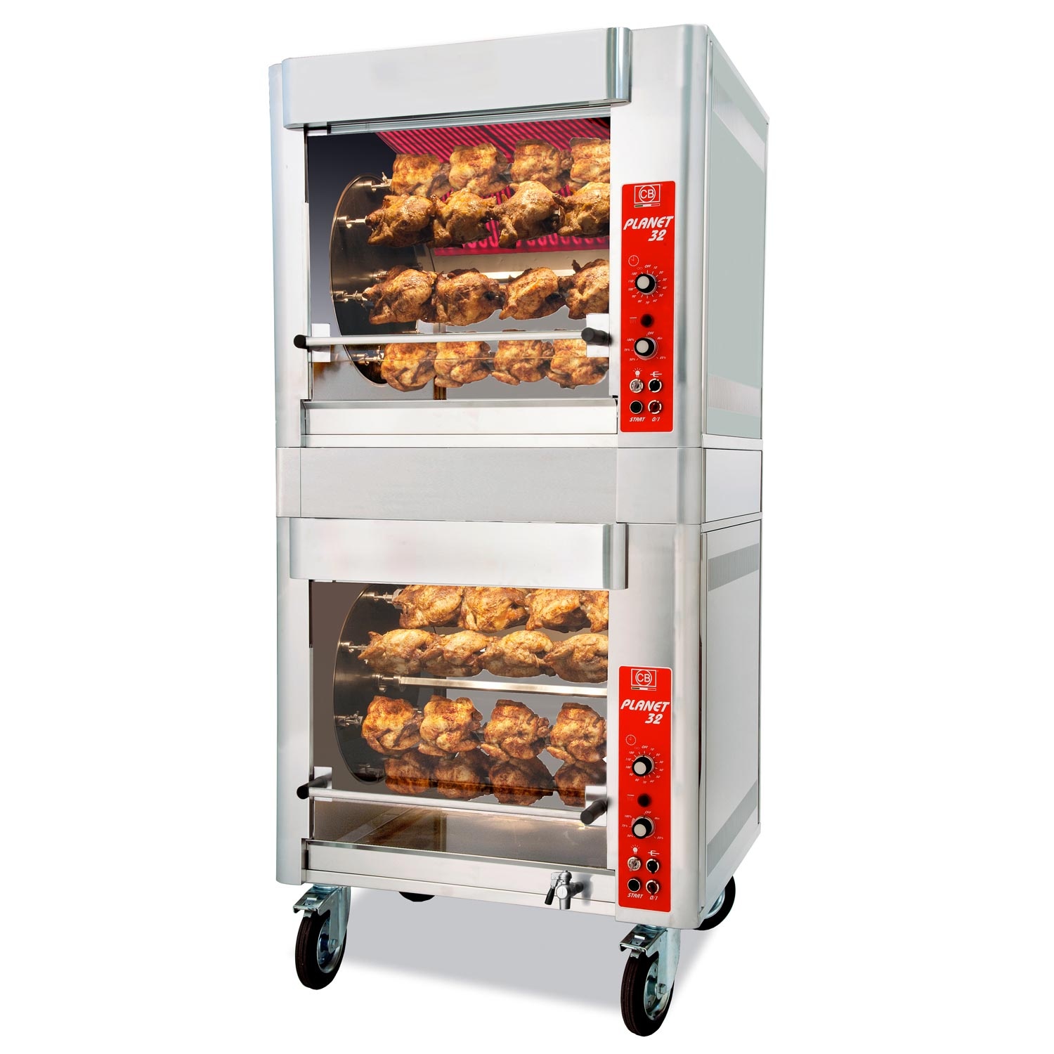 Планетарная электрическая жаровня с инфракрасными нагревательными элементами на 64 куры, в комплекте 16 вертелов с вилками.