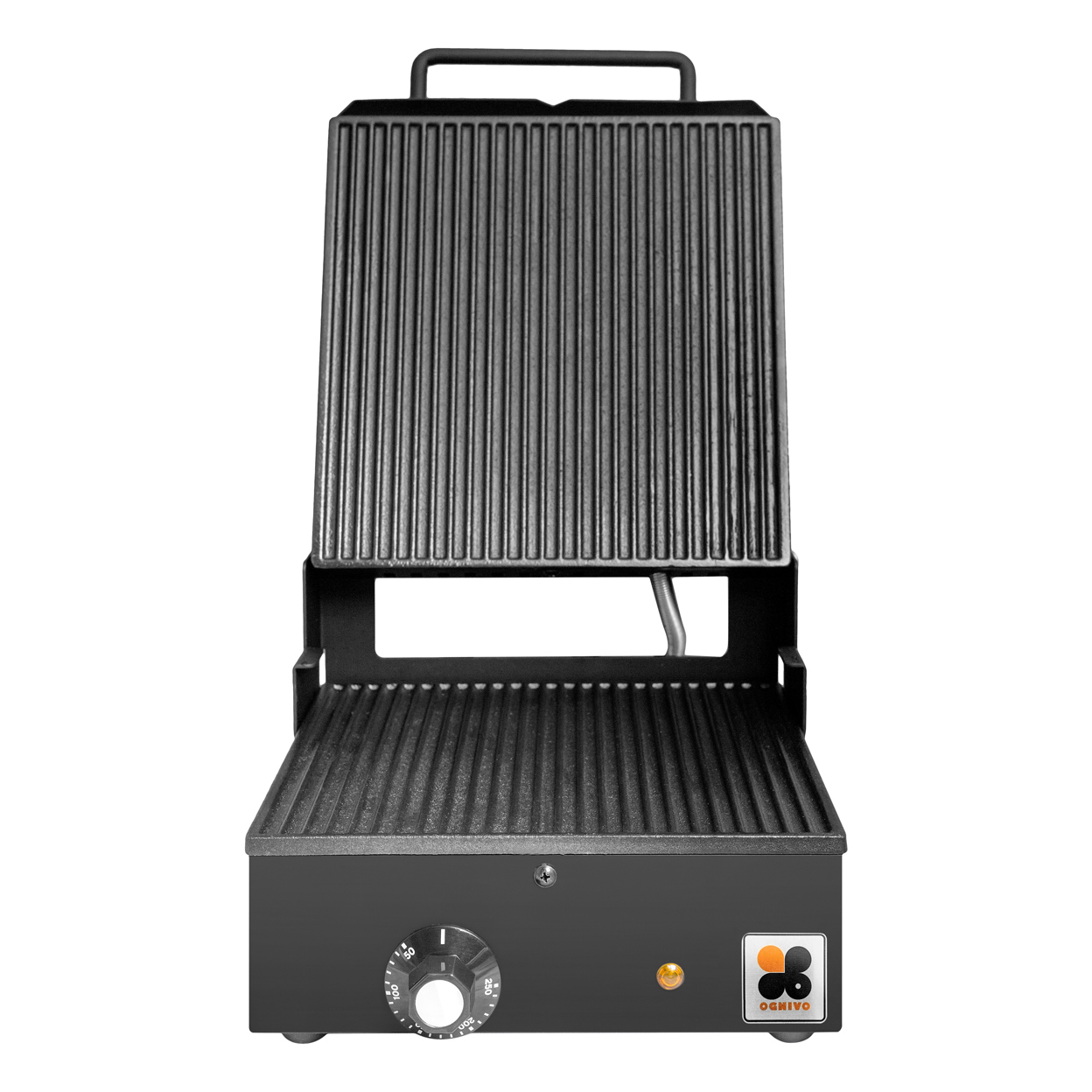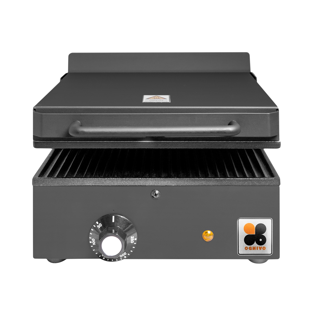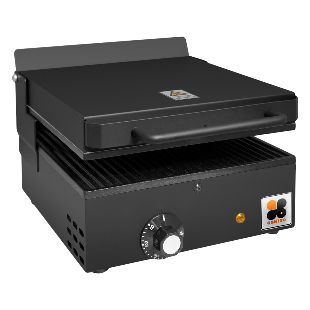 Профессиональный контактный гриль KG-01 в черном цвете торговой марки «OGNIVO» от компании «Огниво - пищевое оборудование».