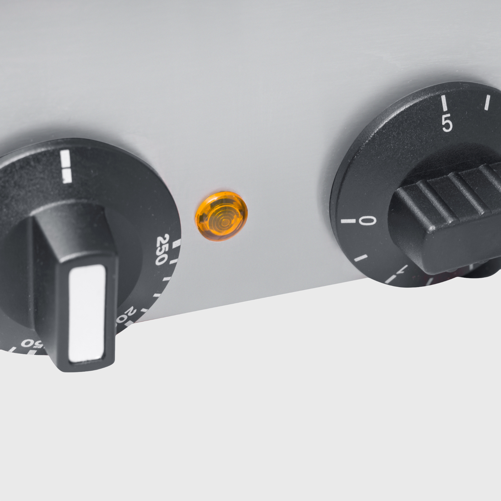 Дополнительная защита кабельного ввода и силиконовый кабель с двукратным запасом по сечению. Силиконовые термостойкие ножки. Гриль снабжен термостатом немецкой марки EGO