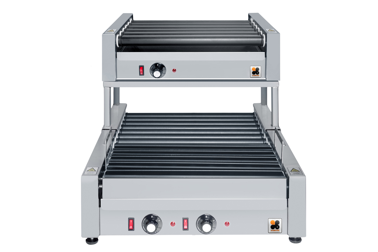Комбинация состоит из комбинированного гриля KRG-80.45 с котлетницей и роликового гриля RG-6.45, установленного на подставке. Отличается компактностью и универсальностью. Используется на пунктах питания АЗС, мобильных фудтраках, фудкортах и кафе. Рабочие поверхности покрыты тефлоном.