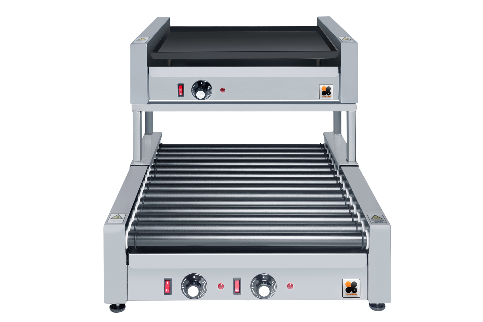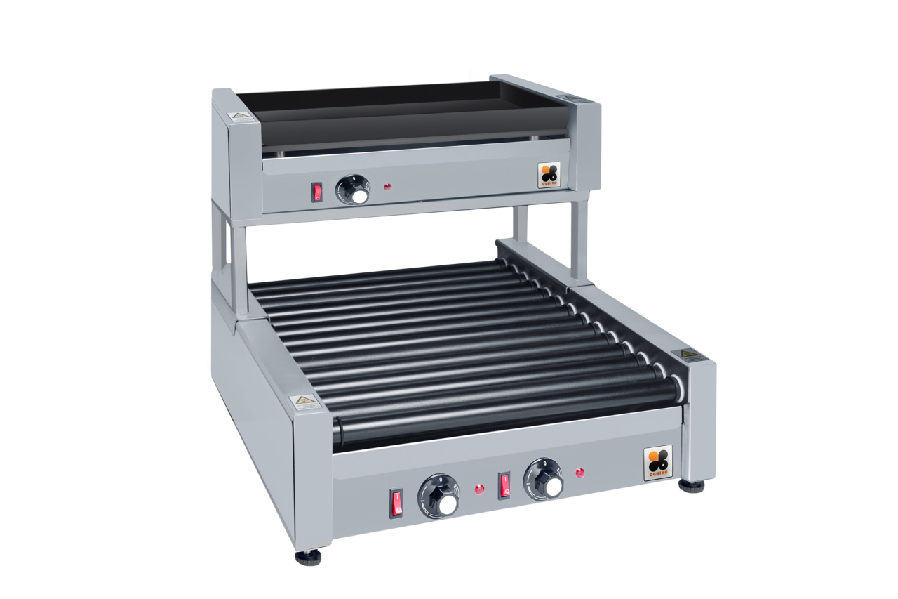 Комбинация состоит из роликового гриля RG-14.45 и профессионального гриля TG-6.45 с плейтом, установленного на подставке. Отличается компактностью и универсальностью. Используется на пунктах питания АЗС, мобильных фудтраках, фудкортах и кафе. Рабочие поверхности покрыты тефлоном.