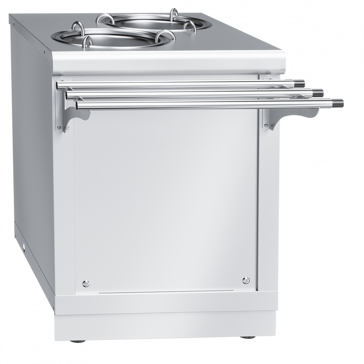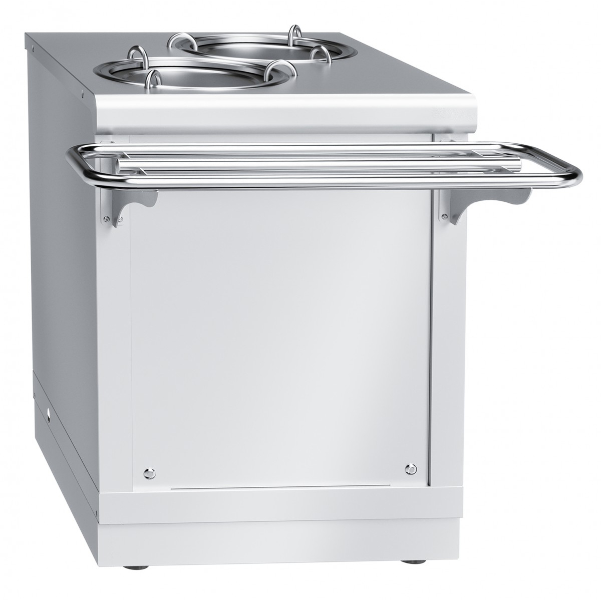 Для удобства установки и перемещения изделия регулируемые по высоте ножки легко можно заменить на поворотные колёса со стопором. Вариант с колёсами особенно удобен при организации мобильного питания в гостиницах, ресторанах, выездных мероприятиях.