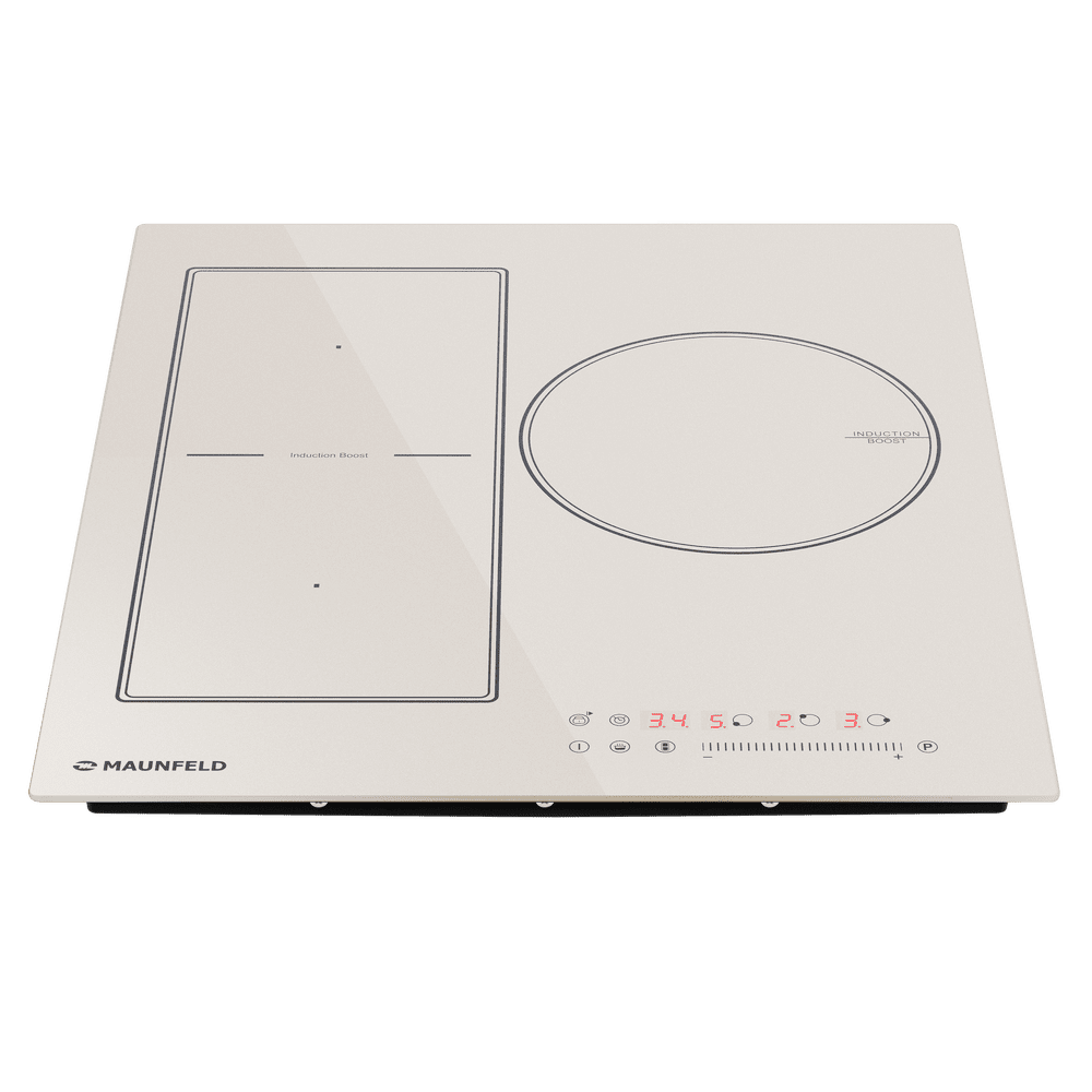 В варочной панели используется 3 индукционных элемента с бустерами - функцией максимального нагрева за короткий промежуток времени. Позволяет использовать дополнительную мощность, тем самым обеспечить высокую скорость закипания. Bridge Induction - это высокая производительность, возможность объединения двух конфорок, для регулирования одним элементом управления. Мощность и таймер этих конфорок изменяются одновременно. Индукционный мост предназначен для приготовления в посуде большого размера.