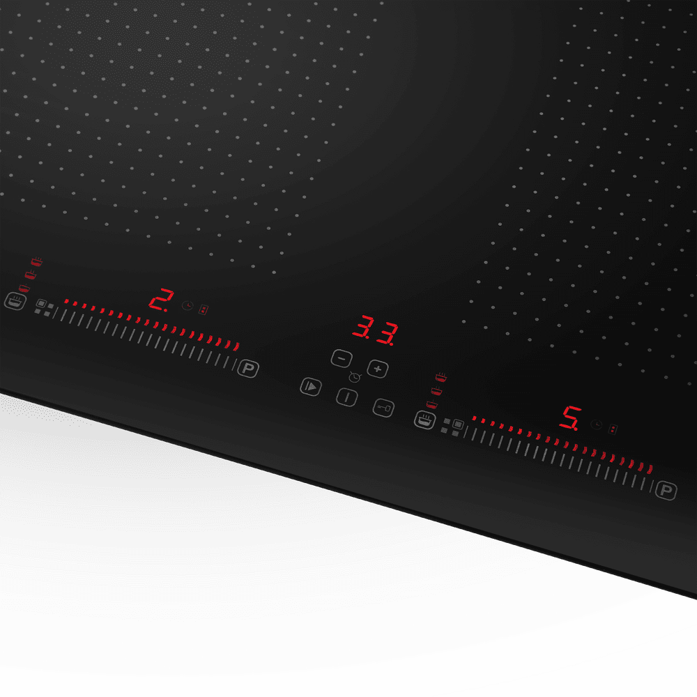 В варочной панели используется 4 индукционных элемента с бустерами - функцией максимального нагрева за короткий промежуток времени. Позволяет использовать дополнительную мощность, тем самым обеспечить высокую скорость закипания. Кроме того, конфорка распознает размер дна посуды и активирует нагрев именно в том месте, без слепых зон. Функция объединения соседних конфорок «Мост» позволяет одновременно включать и регулировать две отдельные конфорки, расположенные вертикально.