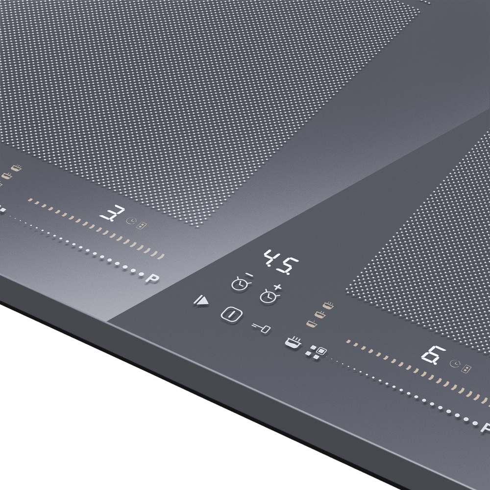В варочной панели используется 4 индукционных элемента с бустерами - функцией максимального нагрева за короткий промежуток времени. Позволяет использовать дополнительную мощность, тем самым обеспечить высокую скорость закипания. Кроме того, конфорка распознает размер дна посуды и активирует нагрев именно в том месте, без слепых зон. Функция объединения соседних конфорок «Мост» позволяет одновременно включать и регулировать две отдельные конфорки, расположенные вертикально.