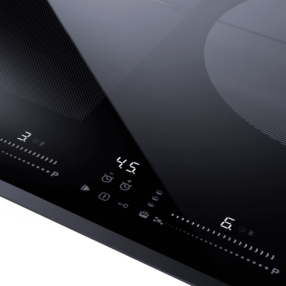 В варочной панели используется 4 индукционных элемента с бустерами - функцией максимального нагрева за короткий промежуток времени. Позволяет использовать дополнительную мощность, тем самым обеспечить высокую скорость закипания. Bridge Induction - это высокая производительность, возможность объединения двух конфорок, для регулирования одним элементом управления. Мощность и таймер этих конфорок изменяются одновременно. Индукционный мост предназначен для приготовления в посуде большого размера.