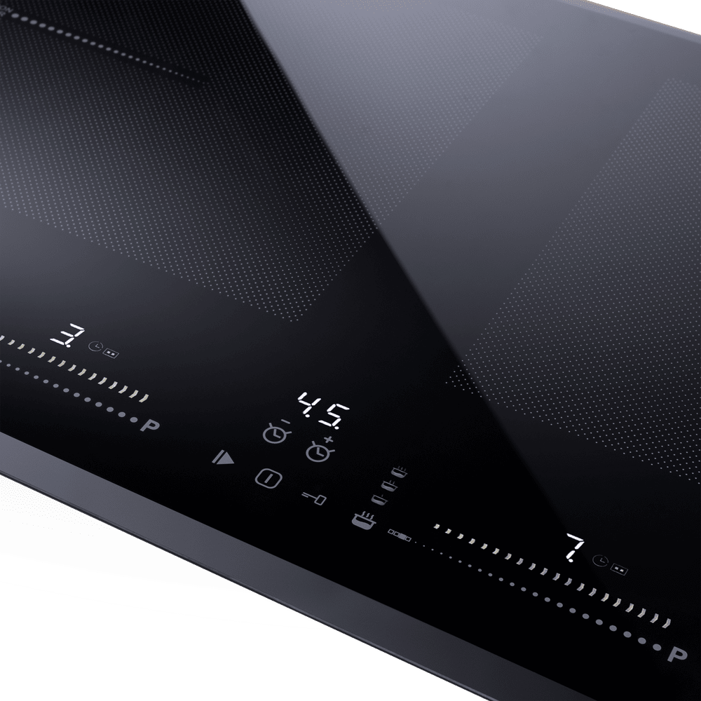 В варочной панели используется 4 индукционных элемента с бустерами - функцией максимального нагрева за короткий промежуток времени. Позволяет использовать дополнительную мощность, тем самым обеспечить высокую скорость закипания. Bridge Induction - это высокая производительность, возможность объединения двух конфорок, для регулирования одним элементом управления. Мощность и таймер этих конфорок изменяются одновременно. Индукционный мост предназначен для приготовления в посуде большого размера.