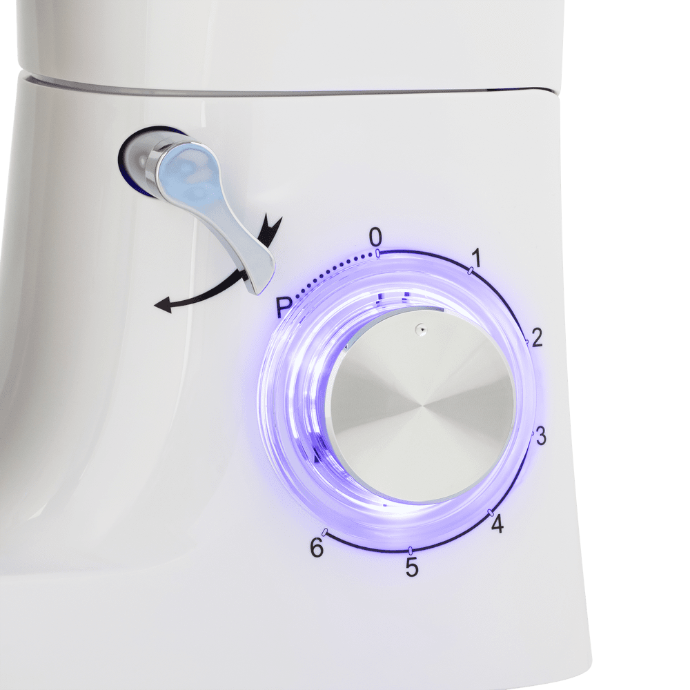 В зависимости от необходимого типа готовки можно выбрать одну из 6 скоростей работы комбайна или импульсный режим с помощью переключателя, расположенного на корпусе.