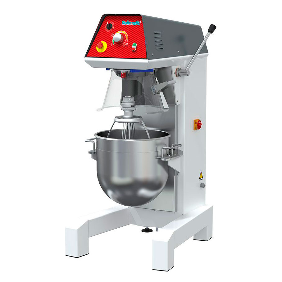 Регулировка скорости происходит посредством инвертора. Миксер имеет встроенную систему безопасности с проверкой правильной установки чаши и её защитных устройств. Привод в масляной ванне. Венчик и шестерня изготовлены из стали, колпак из чугуна.