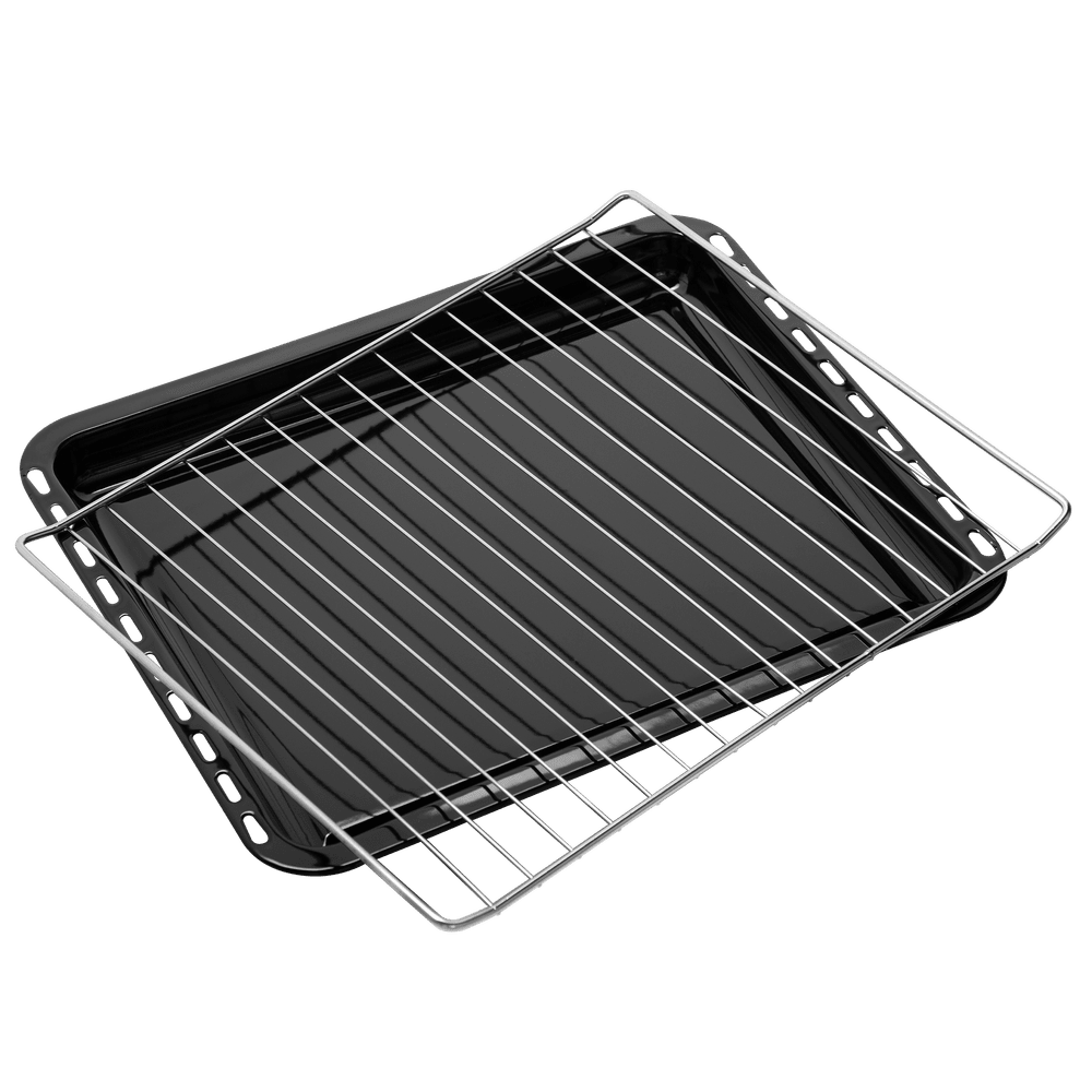 - В комплекте решётка, прямоугольный противень, круглый глубокий противень