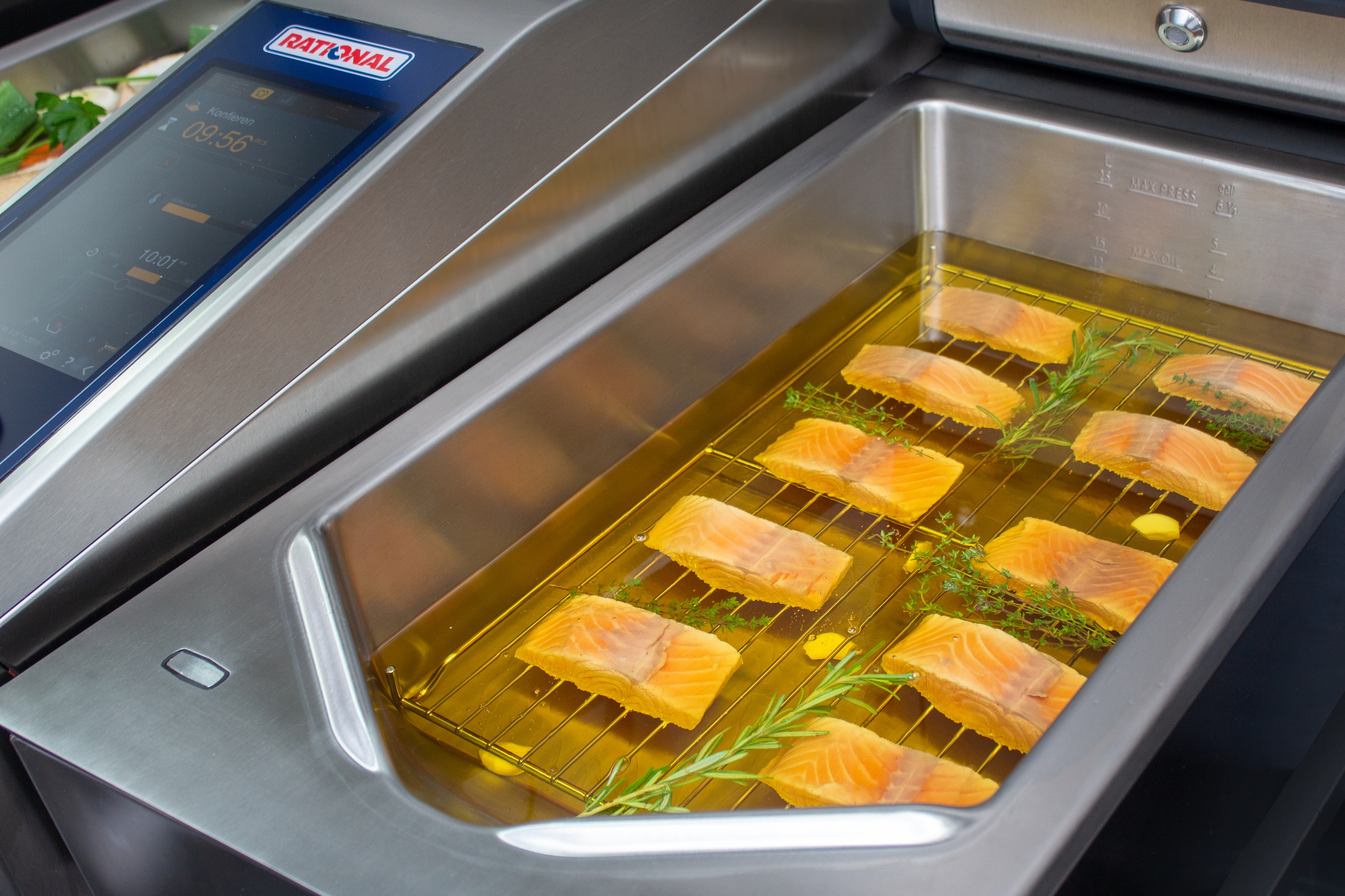 - Делает возможным точное приготовление изделий из теста, фритированных, пошированных или отварных продуктов. Достаточно положить продукты в корзину для варки или приготовления во фритюре, задать желаемый результат — всё остальное будет выполнено автоматически