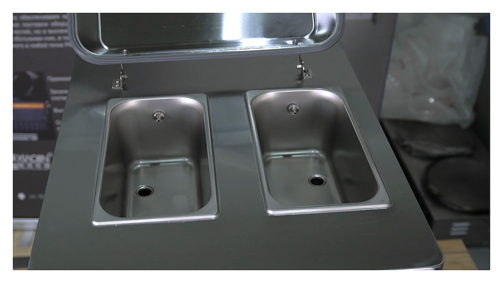Модель HIM-03 имеет два бункера для загрузки смесей 2-х видов и три порционных рожка для выкладки готового продукта, что позволяет получать мороженое 3-х различных вкусов: два – моно и один – комбинацию из этих двух.