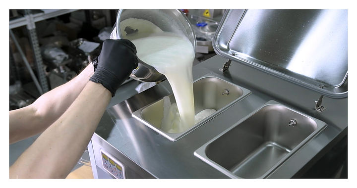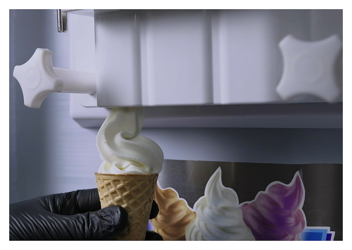 Фризер позволяет изготавливать мороженое из жидкой смеси. Плотность продукта зависит от жирности смеси. Чем меньше жирность, тем более воздушной получается текстура холодного лакомства.
