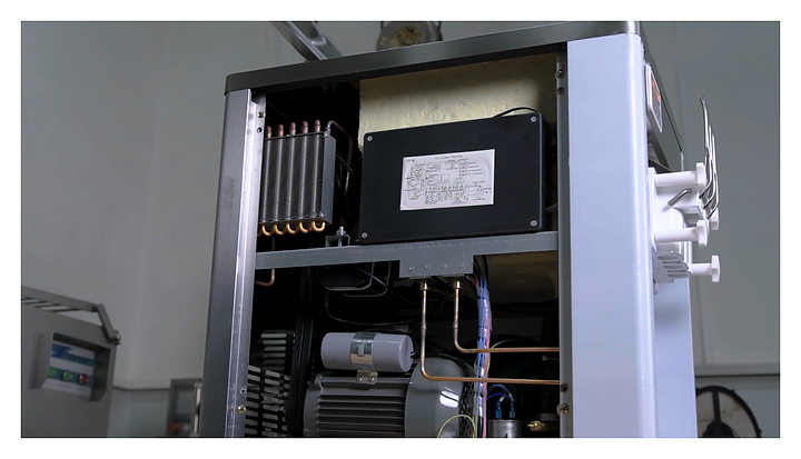 Модификация фризера HIM-03 с функцией ночного хранения и помпой для перекачки готовой смеси в рабочую камеру охлаждения.