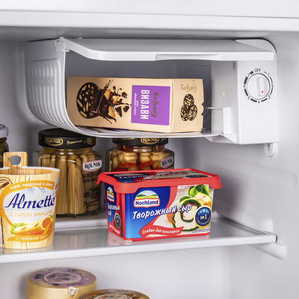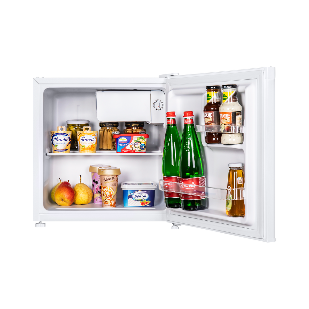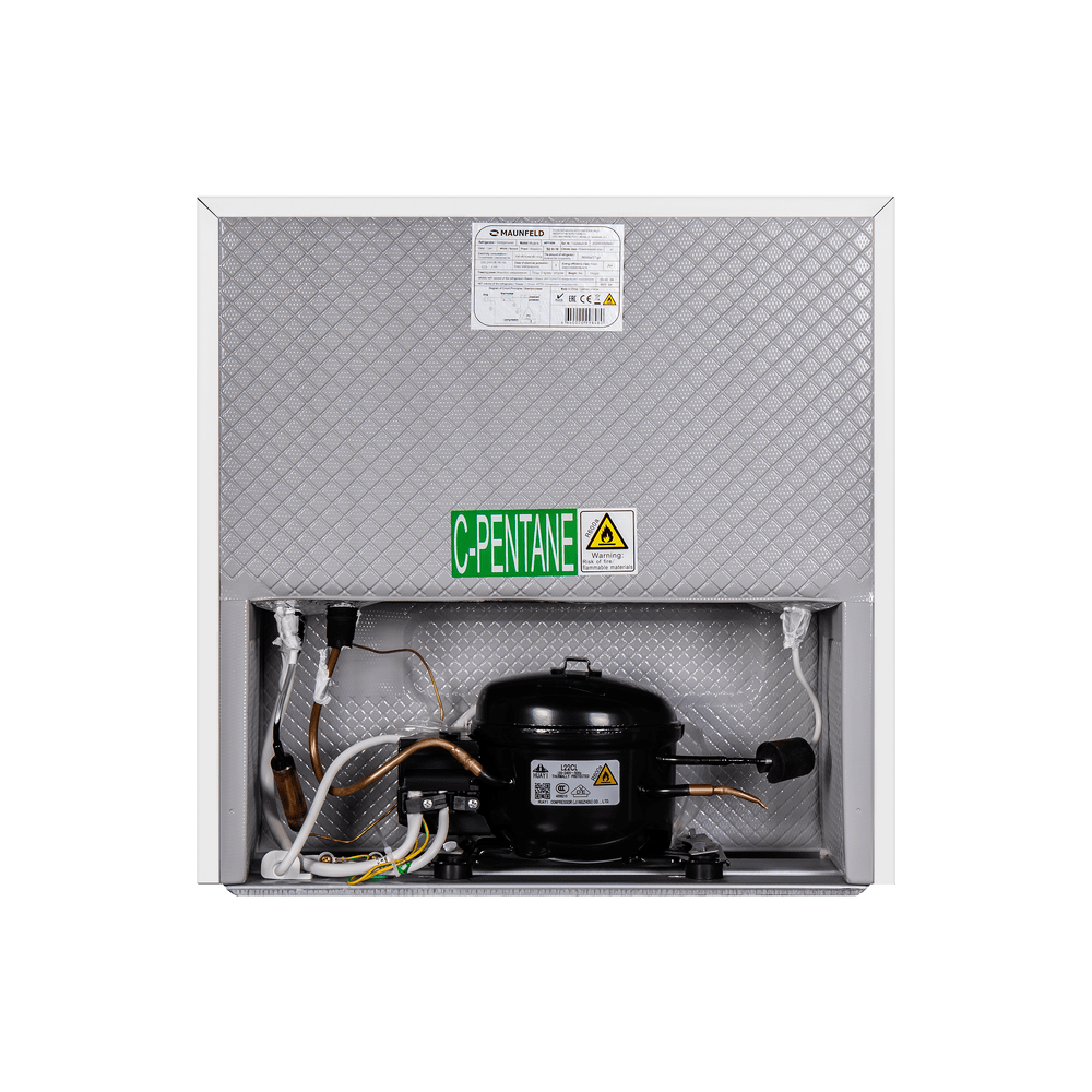 Компактный однокамерный однодверный холодильник MFF50 высотой всего 50 см с камерой охлаждения, располагающейся в верхнем углу.