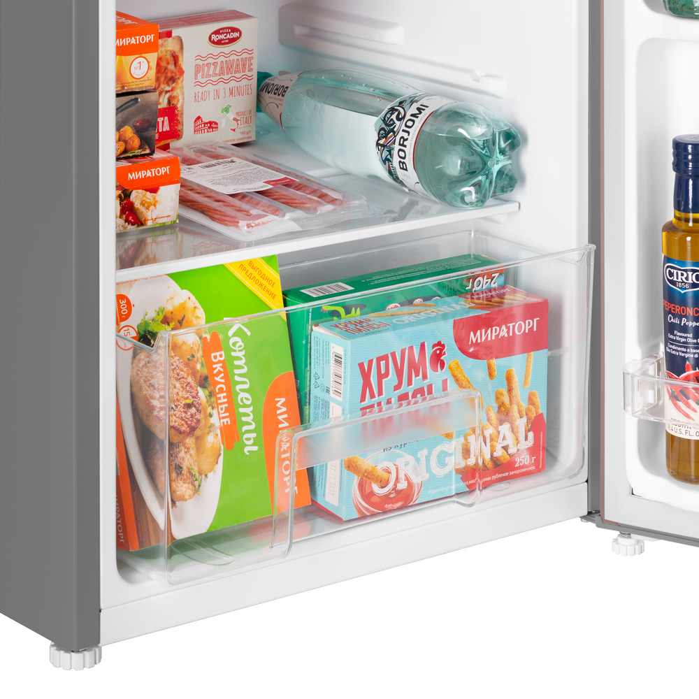 - В комплекте 1 полка, 1 ящик, 3 полки в двери, подставка для яиц