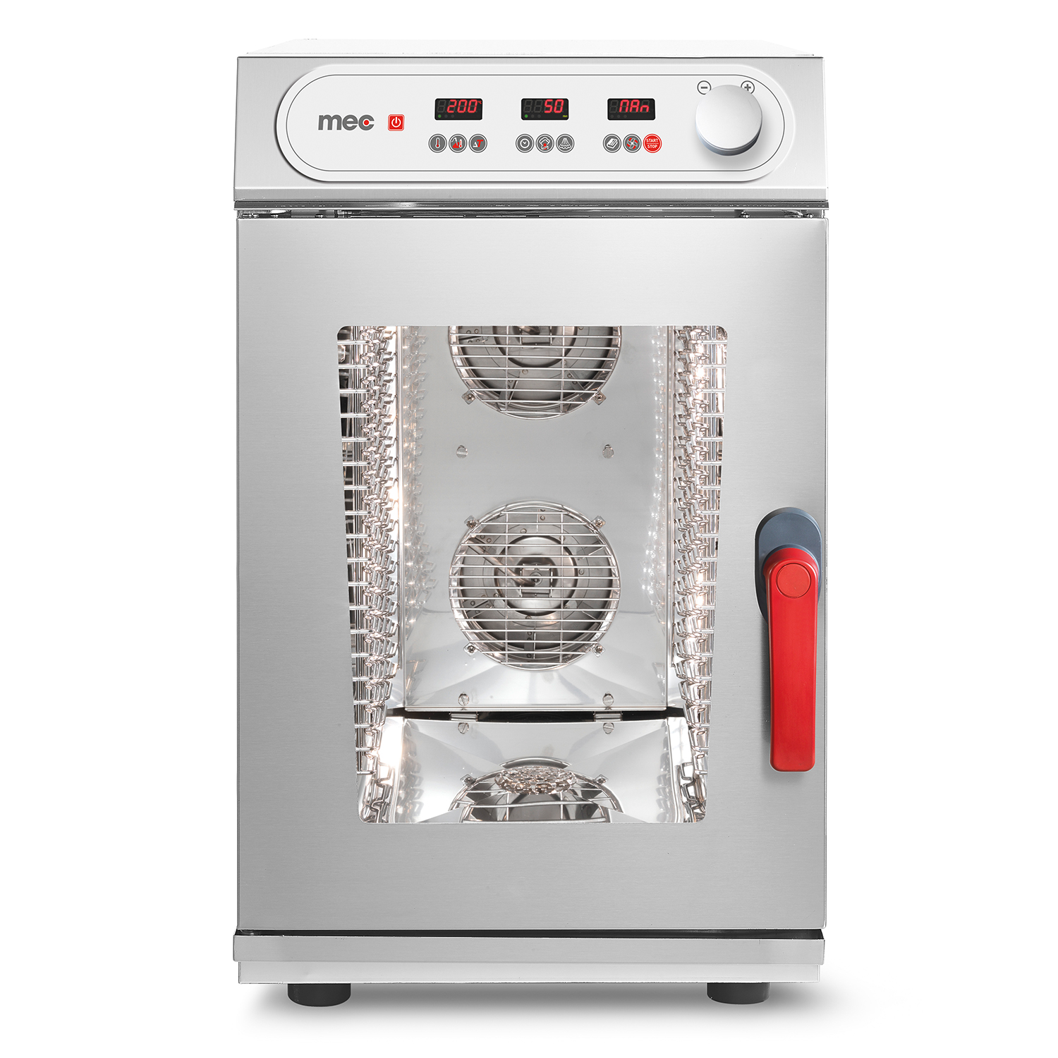 Пароконвектомат MEC предназначен для приготовления различных блюд методом обработки горячим воздухом и паром на предприятиях общественного питания и торговли. Модель оснащена двигателем с инверторной технологией вентилятора и дверцей бокового открытия с энергосберегающим стеклом. Корпус и рабочая камера пароконвектомата выполнены из нержавеющей стали.